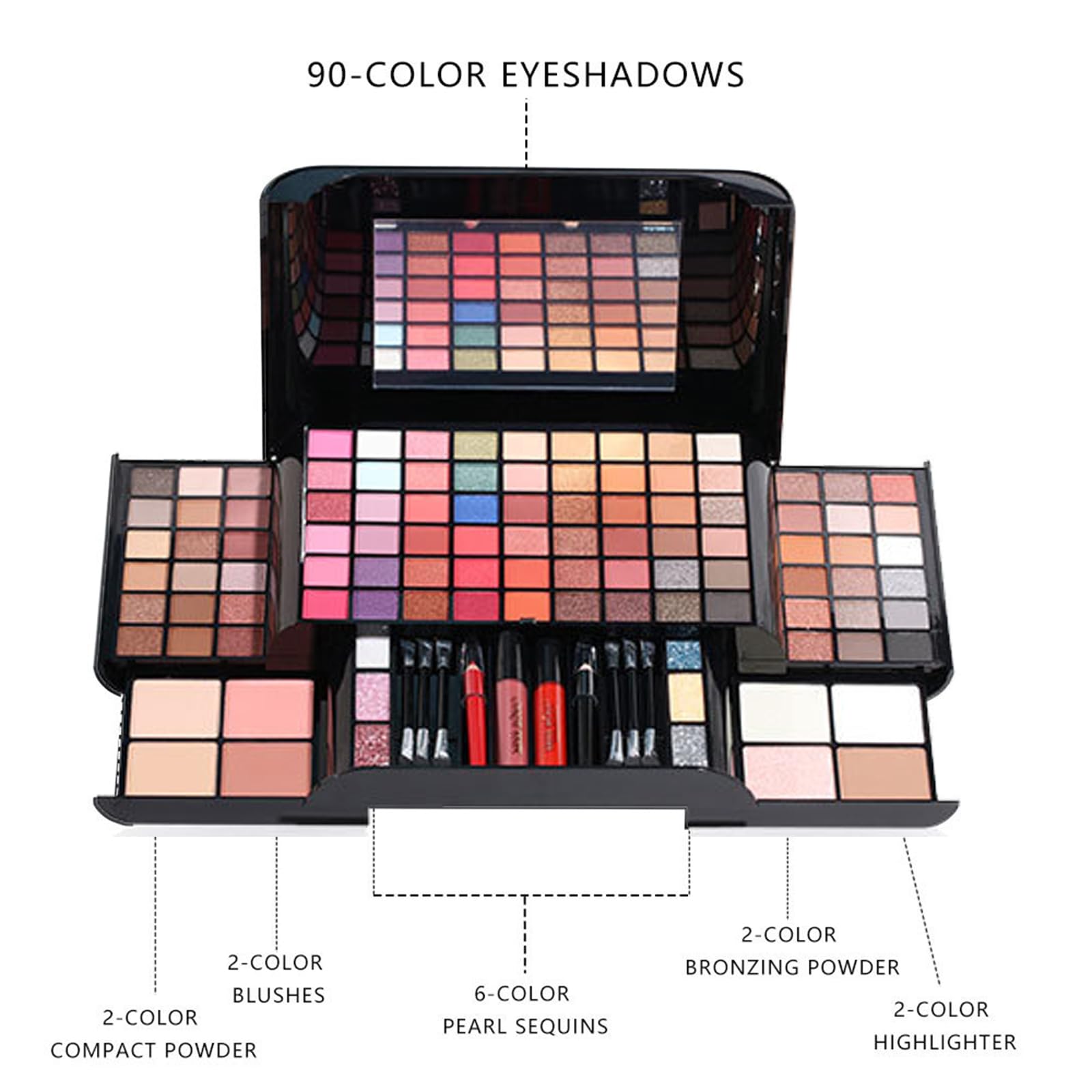FantasyDay Makeup Sets, Multifunction Makeup Palettes with Mirror, 90 Color Eyeshadows/Compact Powder/Sequins/Bronzing Powder/Highlighter/Lip Color, Makeup kit for Women Full Kit - #A