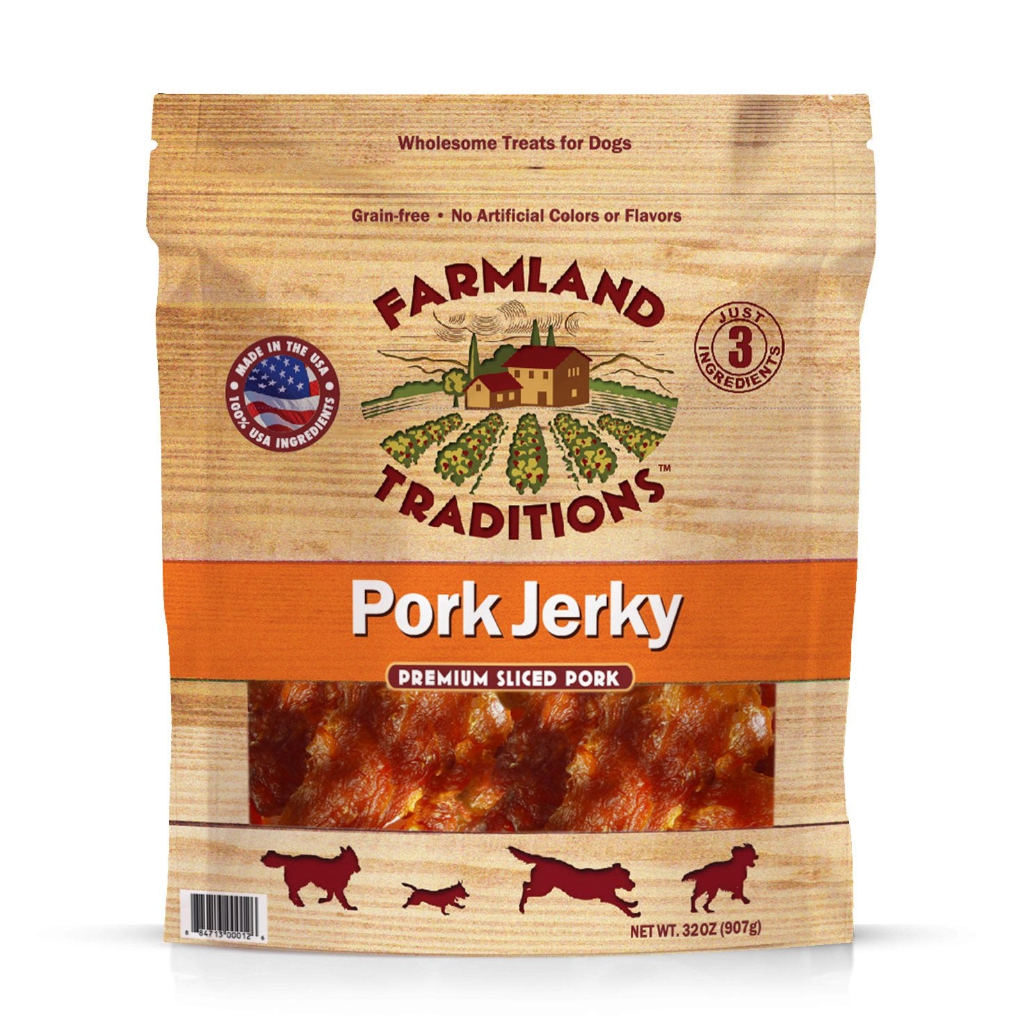 Farmland Traditions Jerky Treats are premium dog treats made from 100% US raised pork. Unlike other treats that use the term "jerky" to describe products containing non-meat ingredients such as grains, sugar and artificial additives, our authentic jerky treats are made from protein packed meat, perfectly dehydrated to maintain taste and nutritional value.