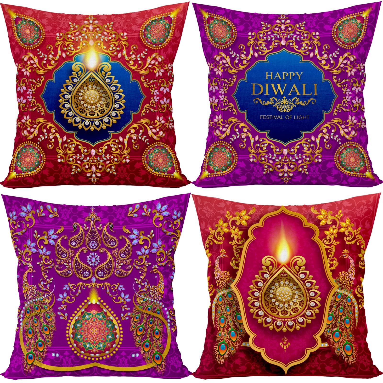 FARMNALL Diwali Throw Pillow Covers 18x18 Set of 4 Diwali Light Diyas Peacock Pillow Case Diwali Decor Indian Diwali Decorations and Supplies for Home