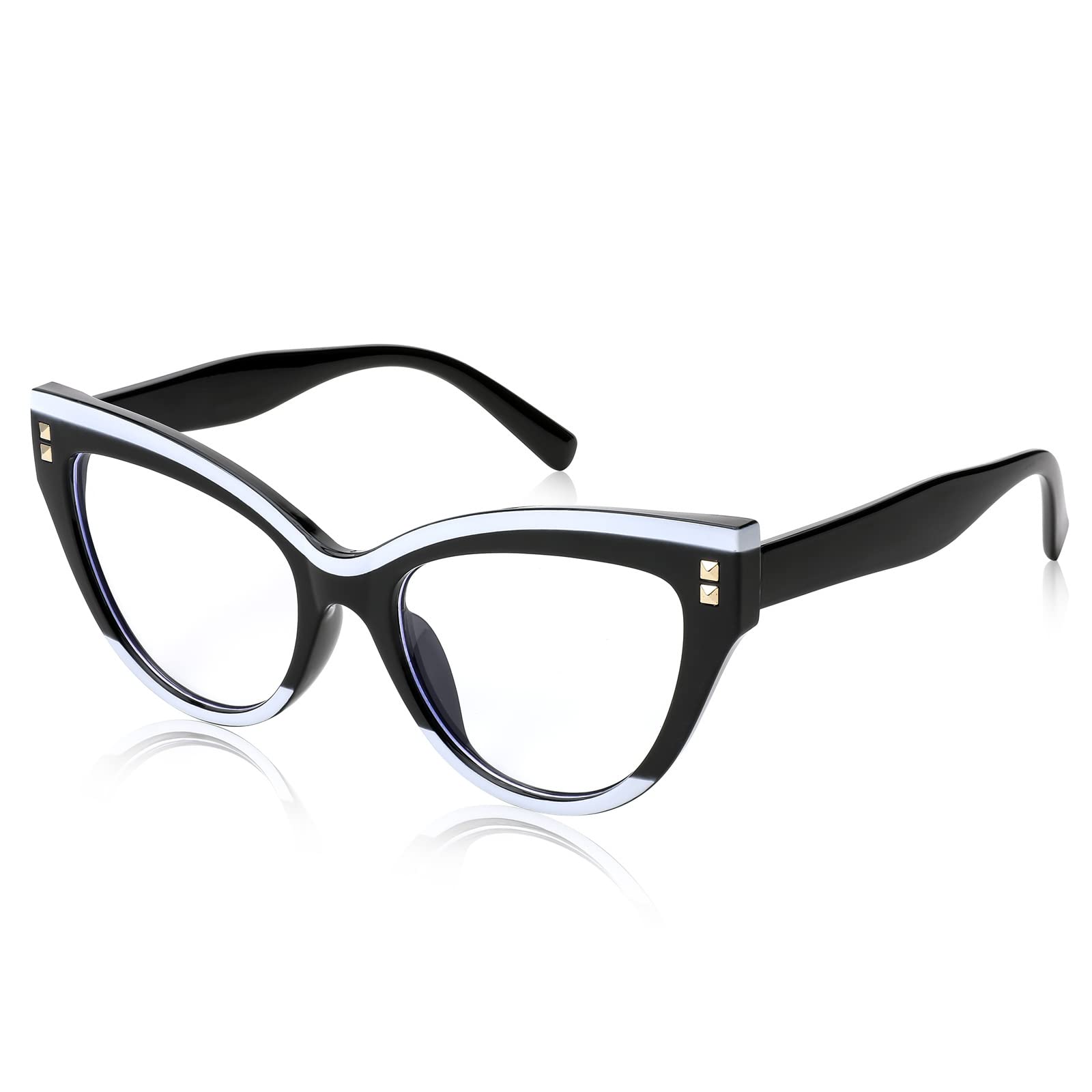 FEISEDY Women Oversized Blue Light Blocking Computer Glasses Fake Nerd Cat Eye Glasses Frame Anti Eyestrain B2323