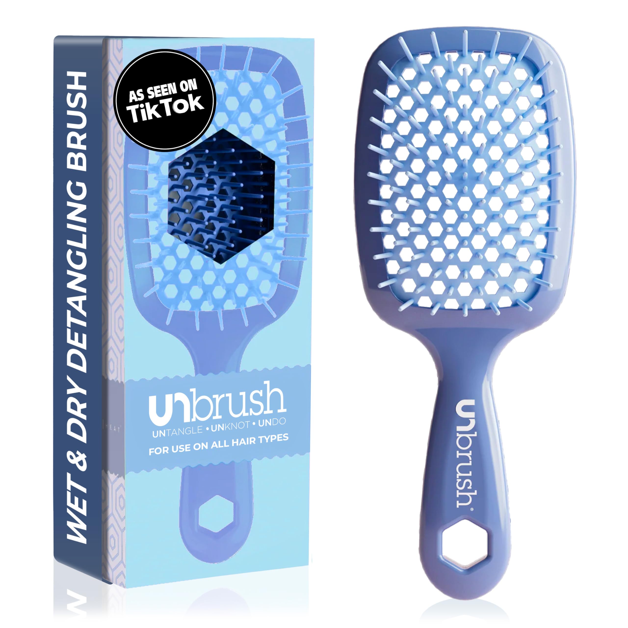 Experience the ultimate in hair care with the UNbrush Wet & Dry Vented Detangling Hair Brush. This innovative detangle brush is crafted to gently and thoroughly extract knots and tangles from even the most unruly or fine hair. Featuring a blend of 105 dual-length bristles, the UNbrush vented hair brush ensures a pain-free detangling experience while minimizing breakage. The DuoFlex Anti-Static Bristles on this detangling hair brush work like magic to gently release tangles, while the 58 long bristles easily detangle even the most stubborn hair. The 47 mini bristles smooth and polish your hair, leaving it looking and feeling silky and healthy. Whether your hair is wet or dry, this hair detangler brush works equally well, making it a versatile addition to your hair care routine. The unique backless vented cushion reduces styling time by allowing air to circulate more freely, speeding up the drying process. This hairbrush for curly hair, thin and straight, or thick hair is also incredibly easy to clean, ensuring hassle-free maintenance. Weighing only 1.5 oz, the ultra-light, high-performance handle offers durable flexibility and ease of use, making it comfortable to hold and maneuver. Ideal for women, men, and children, UNbrush is the perfect at-home or travel hairbrush designed to meet the needs of the whole family. The consistent high-quality construction and exceptional performance of this brush provide long-term value. Say goodbye to painful detangling and hello to smooth, manageable hair with the UNbrush Wet & Dry Vented Detangling Hair Brush.
