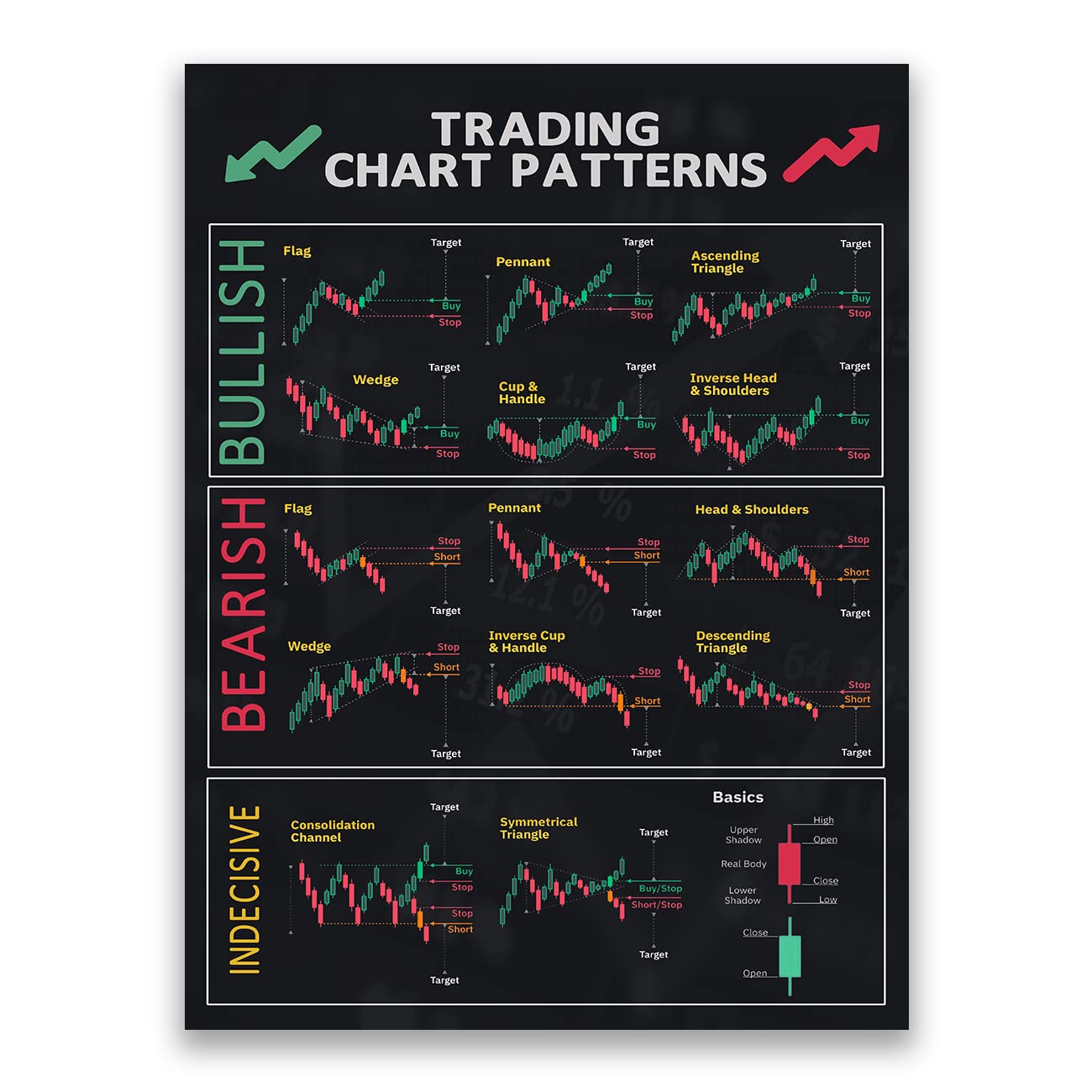FHMDREUP Chart Patterns Candlestick Patterns Poster for Trader Stock Ticker Technical Analysis-Stock for Office Wall Decor Unframed 12x16inch