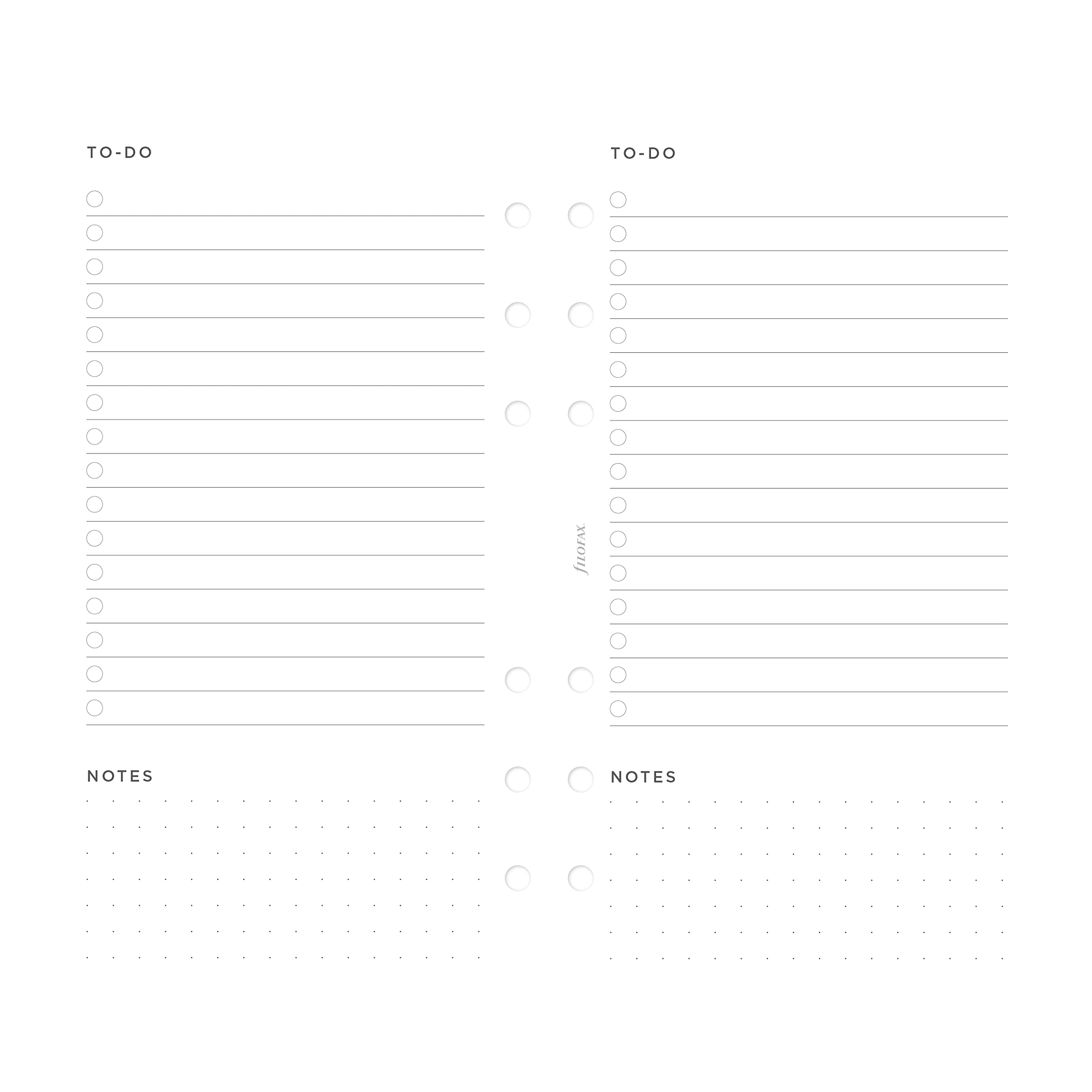Remember all those important tasks with the Filofax 'To Do' Refill featuring corresponding tick-box tracker - the ultimate planning accessory for Filofax Organizers and Clipbooks in Personal size. Includes 20 sheets, white fountain pen-friendly, 80 gsm paper. Over the years, the Filofax organizer has evolved from a simple loose-leaf system into an indispensable everyday accessory. The Filofax logo promises authenticity and the finest craftsmanship. It's a hallmark of impeccable quality, trusted worldwide, since 1921.
