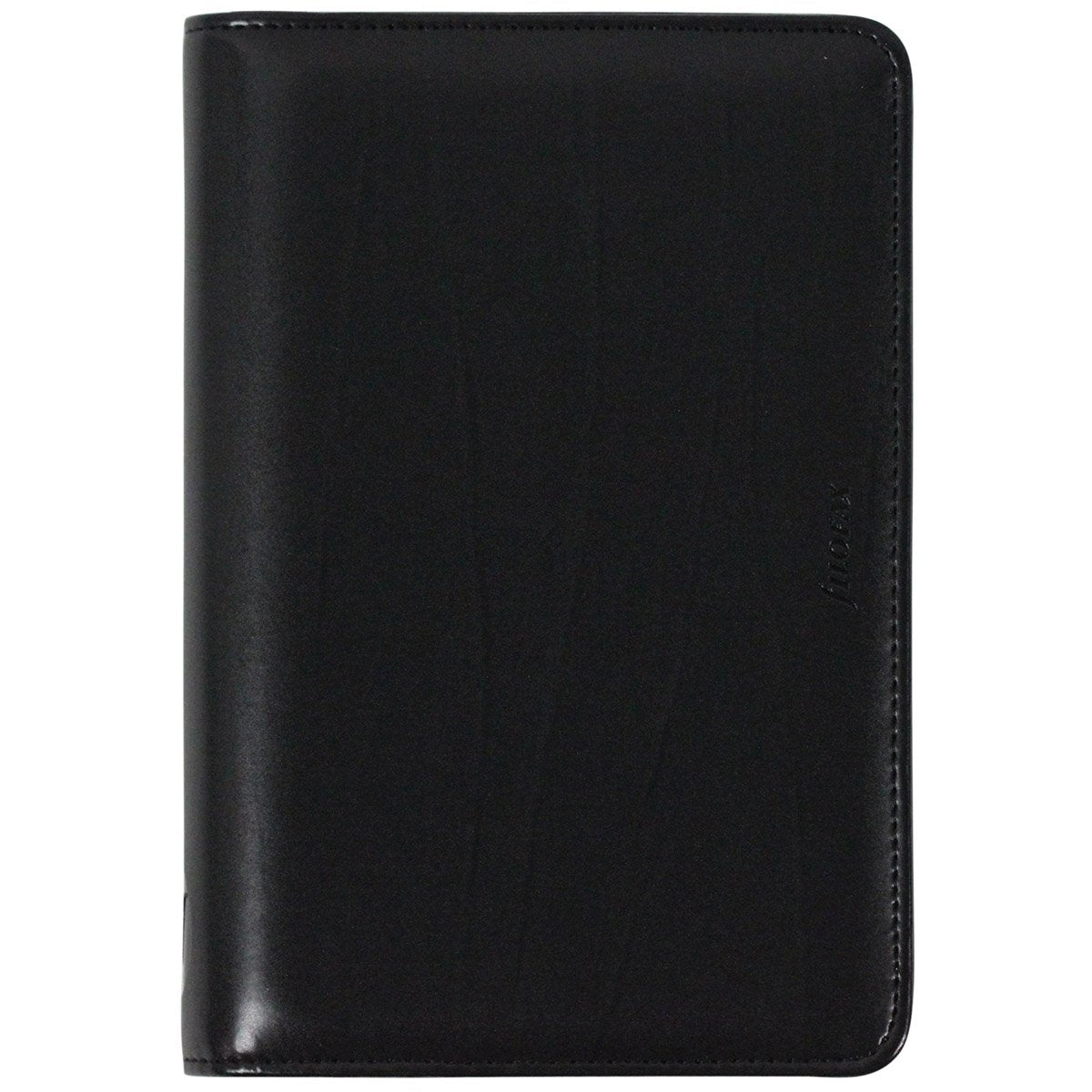 With its clean lines and sleek silhouette, the Filofax Personal Metropol zip organiser remains a favourite. On the left hand interior cover there are six card pockets, a vertical slip pocket and an elastic pen loop. The right side features a notepad pocket and a pen loop. The organiser contains a week on two pages diary and a selection of papers. The ring mechanism is 23mm.