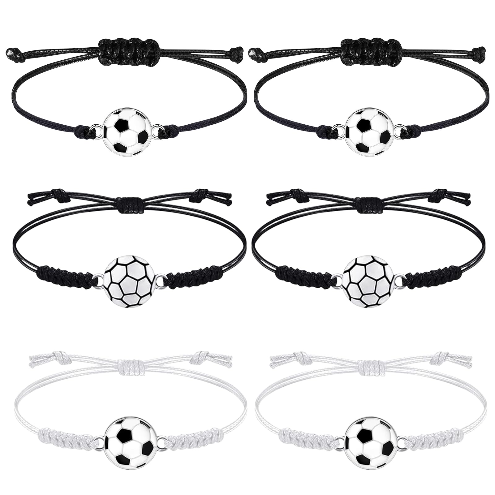 FINEASY Pack of 6 Football Bracelets for Children, Sports Bracelets, Adjustable Woven Bracelet, Boys, Friendship Bracelet for Football Party, Party Bags, Football, Children's Birthday Party, 8-28cm,