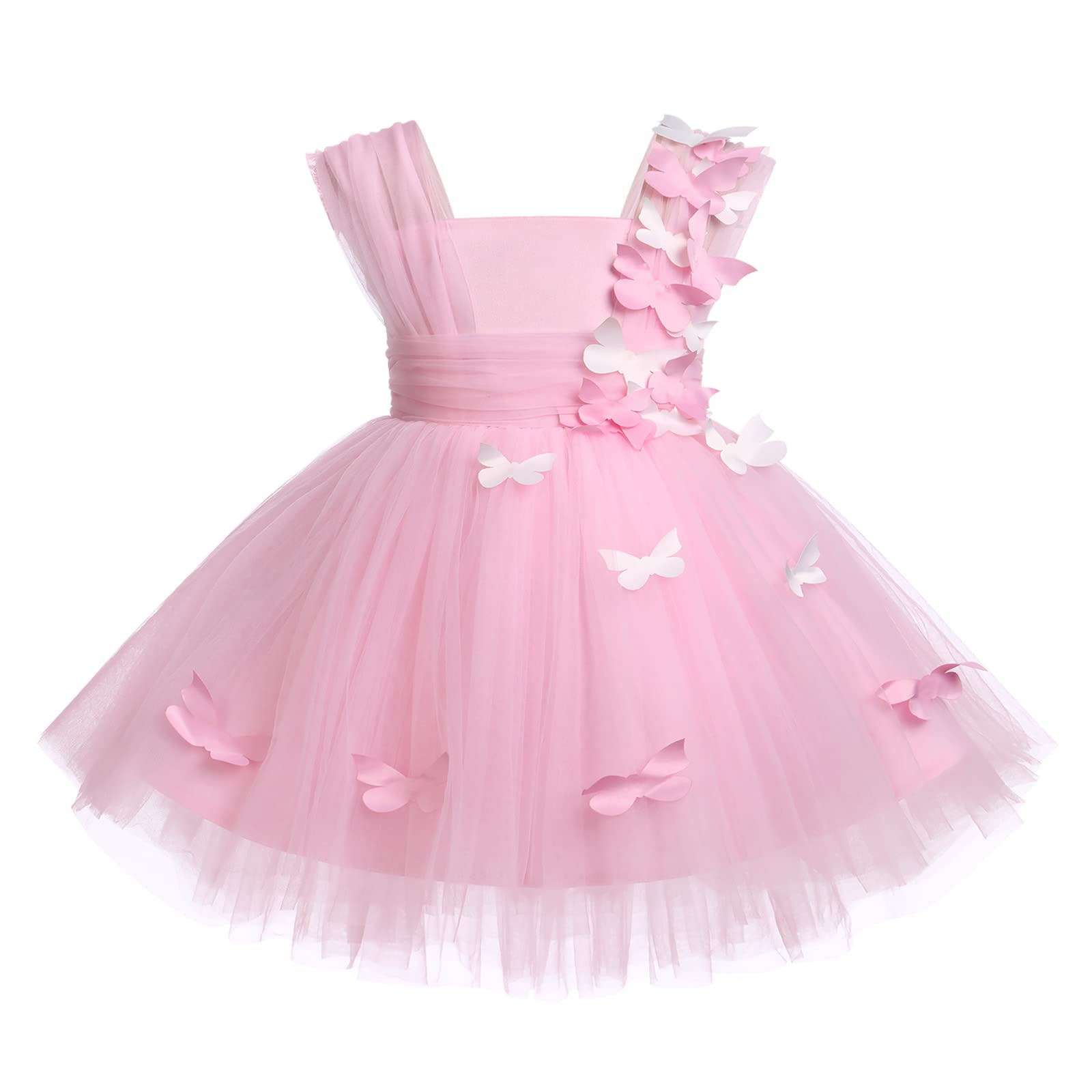 First Birthday Outfit Girl: Butterfly Dress for Toddler Girl 2nd Birthday Cake Smash Photoshoot Kids Princess Formal Spring Baby Tutu Dresses Christening Gowns Wedding Party Light Pink 12-18 Months
