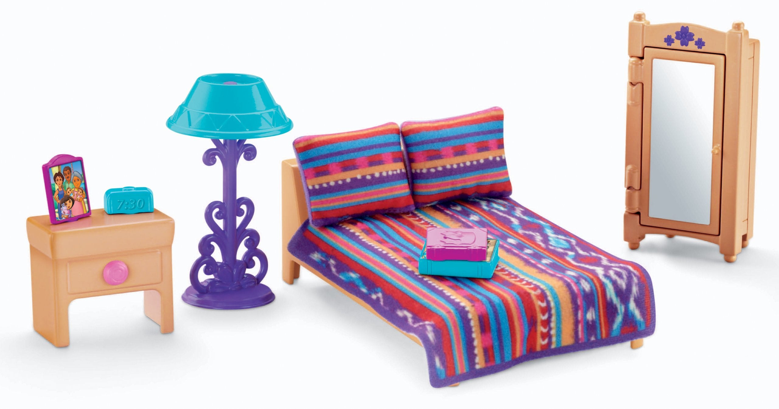 Product DescriptionNow you can decorate the Playtime Together Dora & Me Dollhouse! This play pack includes everything you need look at family photos or read a book in Mami & Papi’s bedroom!From the ManufacturerCollect these furniture packs so you can go on a play date with Dora at the Playtime Together Dollhouse.