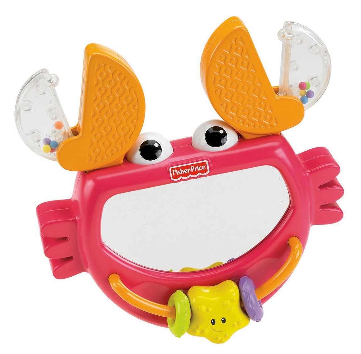 Product DescriptionFisher-Price Growing Baby Clack & Play CrabFrom the ManufacturerIt’s tummy-time! The smiling crab encourages baby with a mirror for self-discovery and other busy activities. Gross motor skills develop as the fun character mirror encourages tummy-time play to strengthen baby’s neck and torso. Visual skills and eye tracking ability are enhanced by the rocking action and colorful beads. And they’re easy to reach and grasp, helping baby’s eye-hand coordination. Develop & Learn: 1) Fun character mirror & colorful beads - Enhance baby’s visual skills & eye-tracking ability. 2) Clickety-clack! - Baby can bat & rock the crab to hear fun sounds. 3) Easy to reach & grasp toys - Encourage baby’s fine motor skills & tactile sense. 4) Develops - Visual skills, Auditory skills, Fine motor skills.