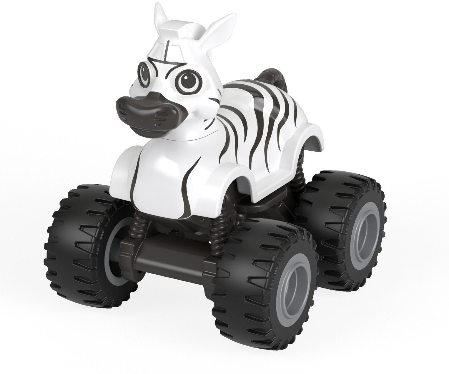 Zebra Truck is a speedy, striped Monster Machine from Animal Island who uses his stripes as camouflage to hide in the tall grasses. This specially designed collectable die-cast monster truck has big wheels and an even bigger personality. This freewheeling vehicle features a die-cast body, thick racing tires, and metal axles for fast-rolling speed perfect for recreating the thrilling races and spectacular stunts as seen on the Blaze and the Monster Machines television show! Each vehicle in the assortment features an exciting and unique design. Your child can collect all of his or her friends from Blaze and the Monster Machines with this amazing die-cast vehicle assortment. Each sold separately and subject to availability.