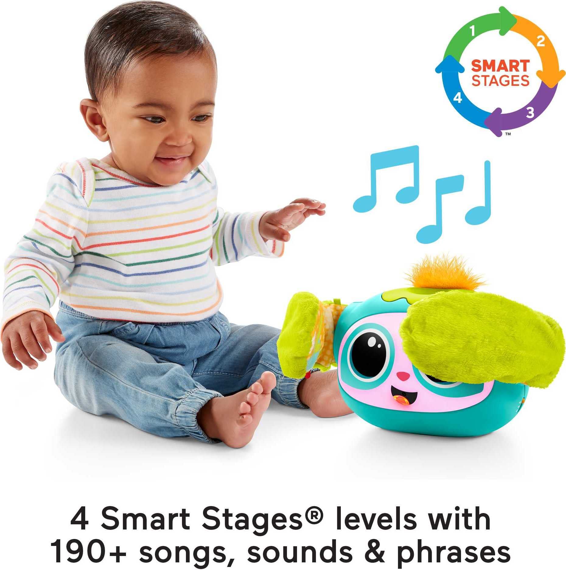 Big smiles, eyes wide, both faces lighting up with joy (and color); a years-long friendship is about to begin. The Fisher-Price Rollin’ Rovee activity toy is an interactive friend that keeps playtime exciting as your baby grows from infant to toddler to preschooler. Each of its four interactive play modes is filled with music and fun activities that encourage little bodies to get moving. Baby’s bestie has a light-up face and soft arms that move, so it can clap, play peek-a-boo, roll over for crawl and chase play, and play with the ball. And while the friends play, Smart Stages learning content teaches your child about the alphabet, numbers, opposites, and much more.