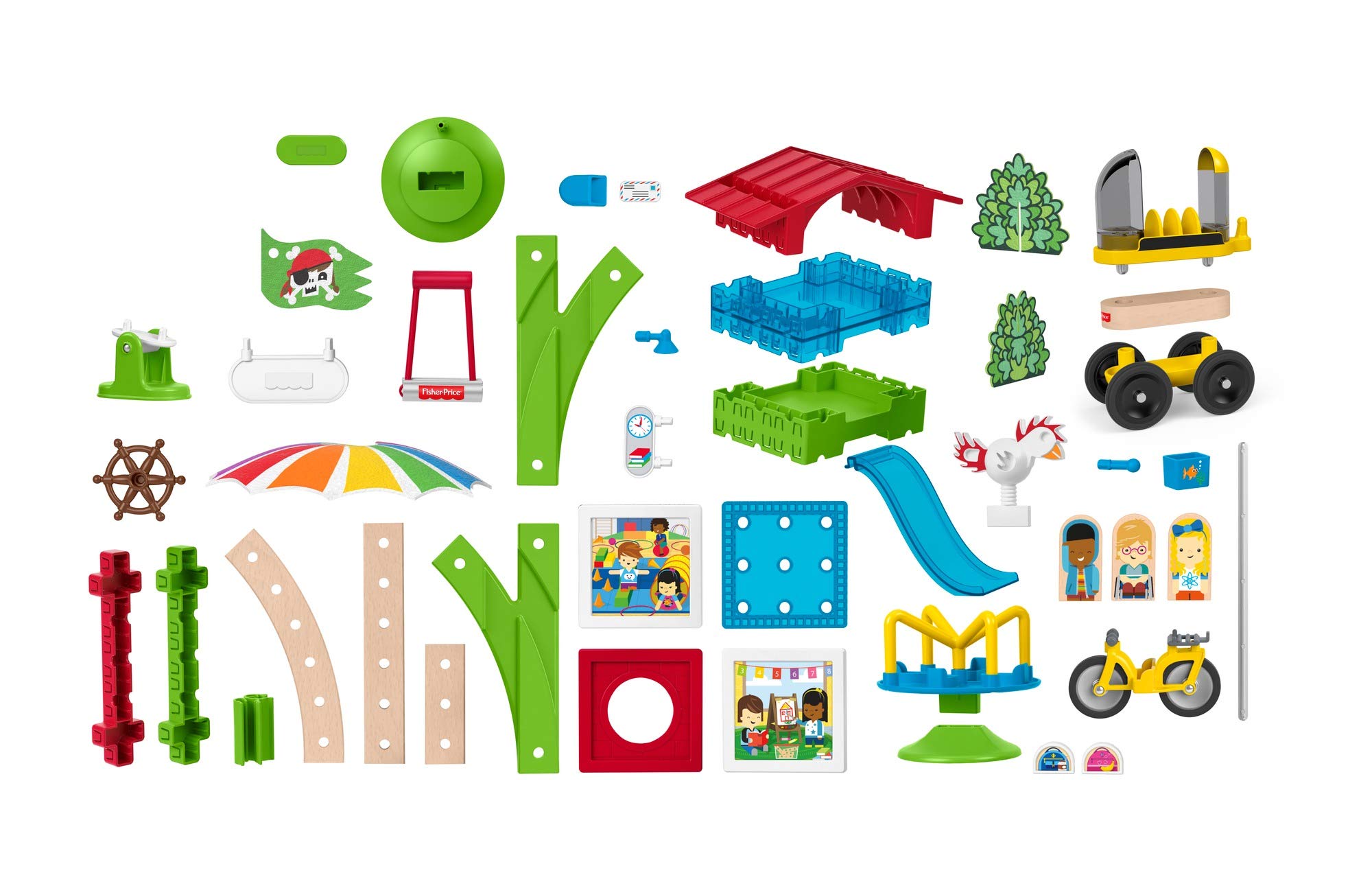 Kids can go from the classroom to the playground with the Wonder Makers Slide & Ride Schoolyard play set from Fisher-Price. With this mix-and-match building set, kids can design the school building and yard, complete with a swing, treehouse, merry-go-round, and more! Using the 75+ reconfigurable play pieces, preschoolers can design different layouts, using the same pieces to create buildings or tracks. With so many combinations to explore, kids can create a different school yard every day-there's no wrong way to play with this unique building set! Where development comes into play Creativity & Imagination: Kids can let their imaginations run wild as they use creative thinking to design their own school and tell stories with the characters Engineering & Building: As preschoolers build and re-build their school, mixing and matching the play pieces to create different configurations, they'll practice their designing and building skills!