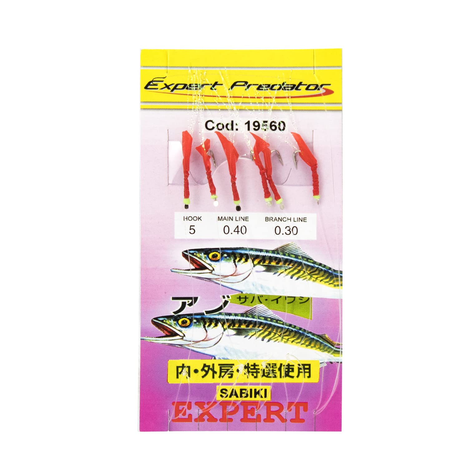 Fisherman Sabiki Set of 6 Bait Hooks No. 4 Red Shrimp with Fibres