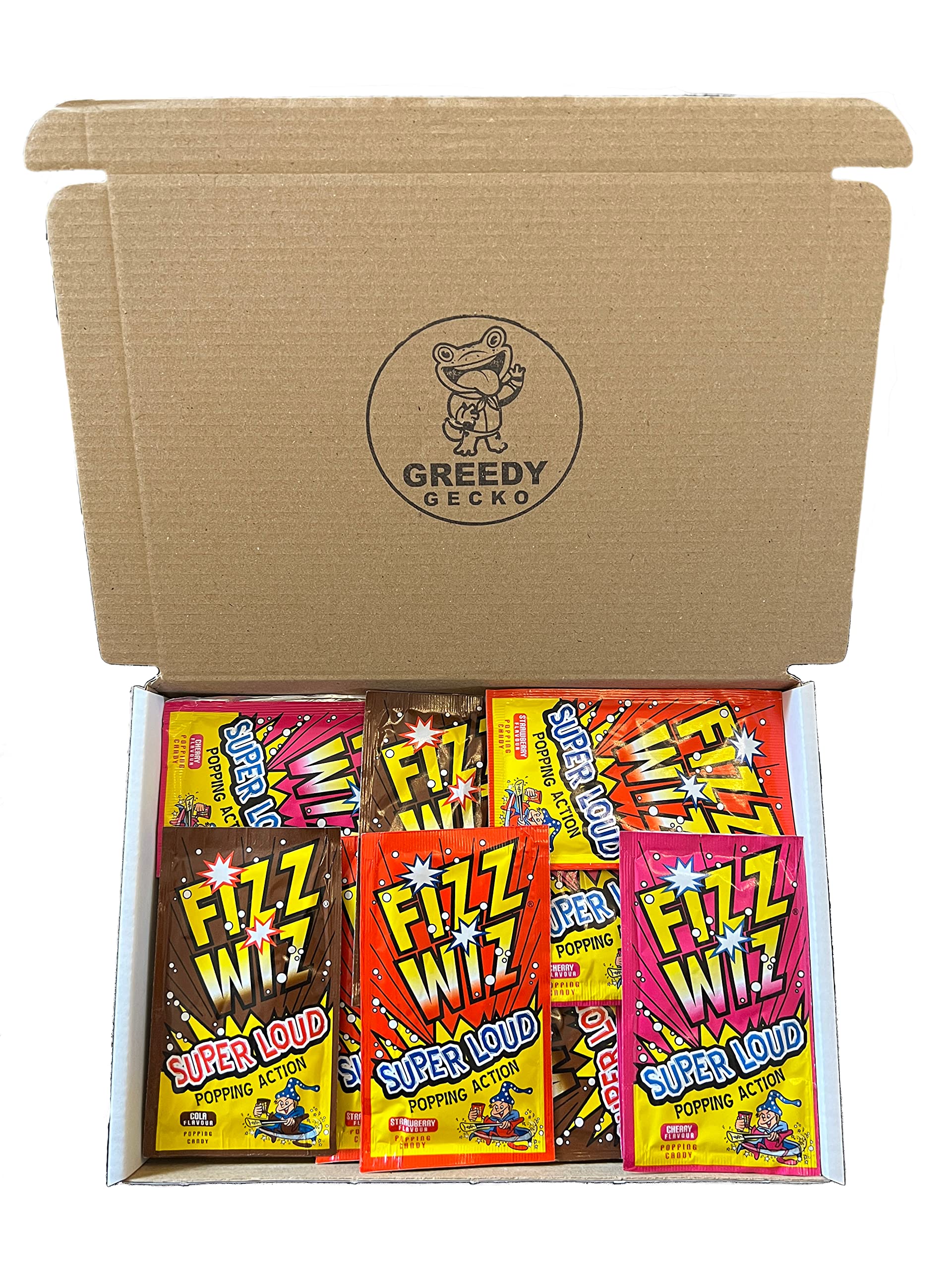 Fizz Wiz Popping Candy Variety Pack! 15 Piece Taster Bundle. Includes: 5 x Fizz Wiz Strawberry Popping Candy (5g), 5 x Fizz Wiz Cola Popping Candy (5g) &, 5 x Fizz Wiz Cherry Popping Candy (5g).