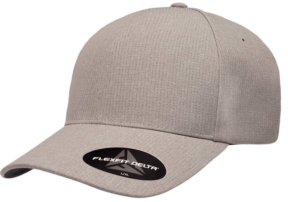 Permacurv visor, black undervisor (White has white undervisor). Black Delta logo on right side. Three-layer high-tech sweatband. Patented stain black technology. Mélange colors are 100% polyester. Laser-cut eyelets. 92/8 polyester/PU spandex. Structured, six stitch free panels, mid-profile.