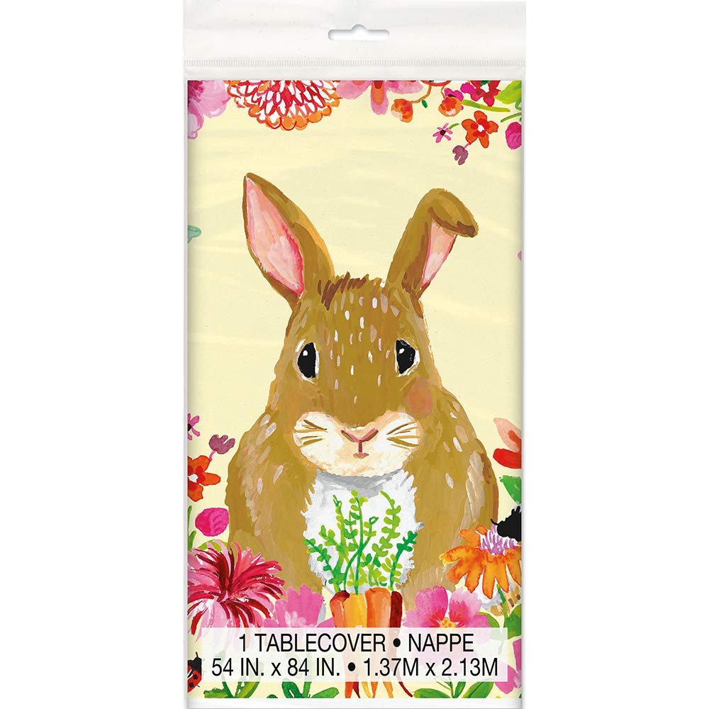 Create a sweet place setting with this Floral Easter Bunny Rectangular Plastic Table Cover The colorful Easter bunny floral design will instantly brighten spring meals
