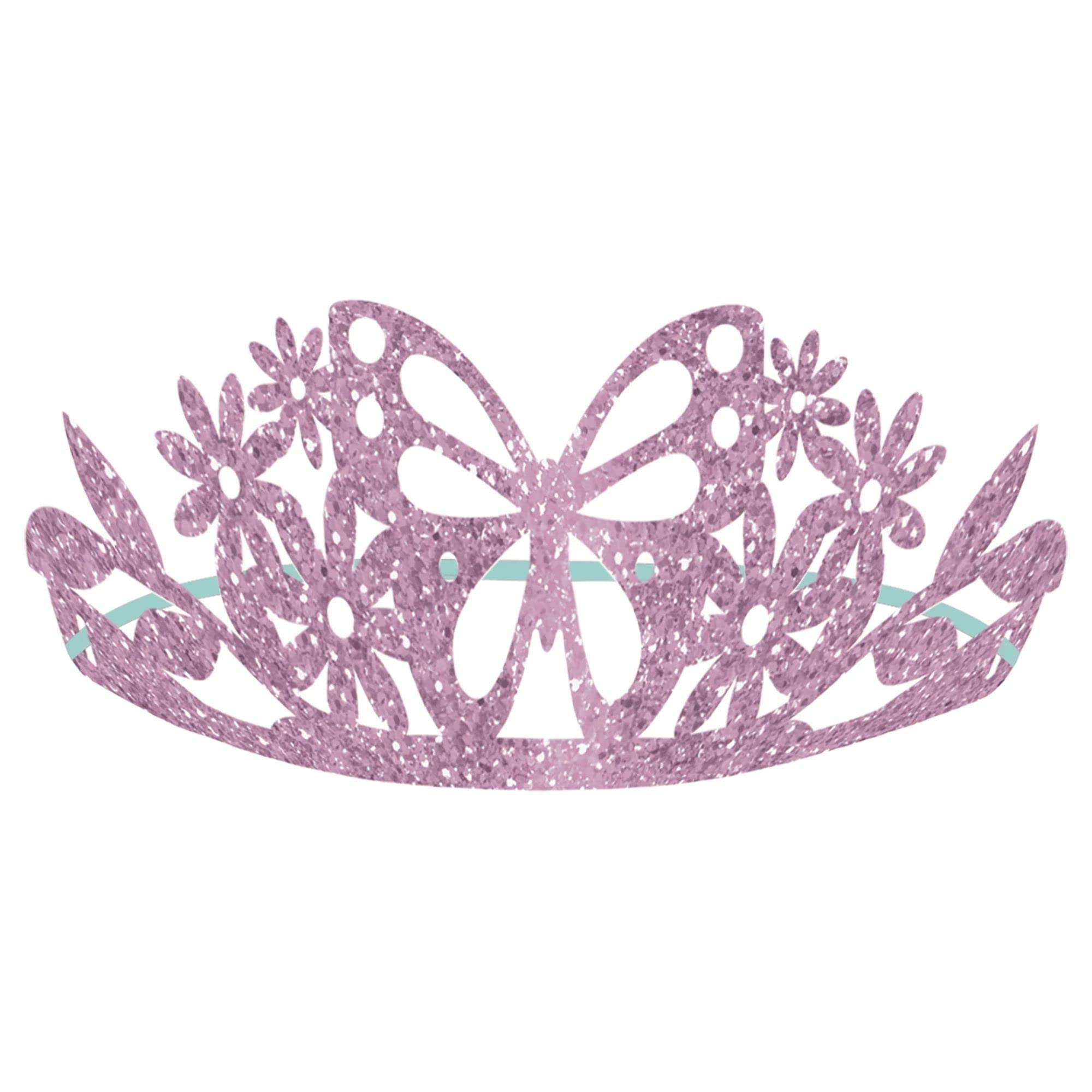 Girls will be excited to wear these paper tiaras featuring a glittery butterfly and flower design. These tiaras are ideal as a party favor, giveaway, or game prize.