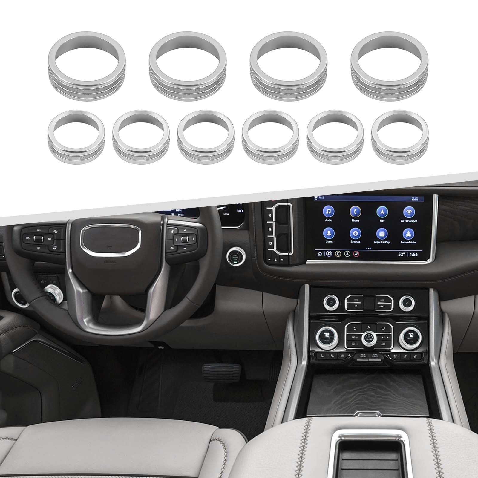 Jimen for 2019+ Silverado Knob Covers, 10PCS Center Console Radio Volume Control Button Air Conditioner AC Switch Ring Trim Fit for Chevrolet Silverado/GMC Sierra 2019-2023, for Chevrolet Suburban 2020-2023, for Chevrolet Tahoe/GMC Yukon 2021-2023