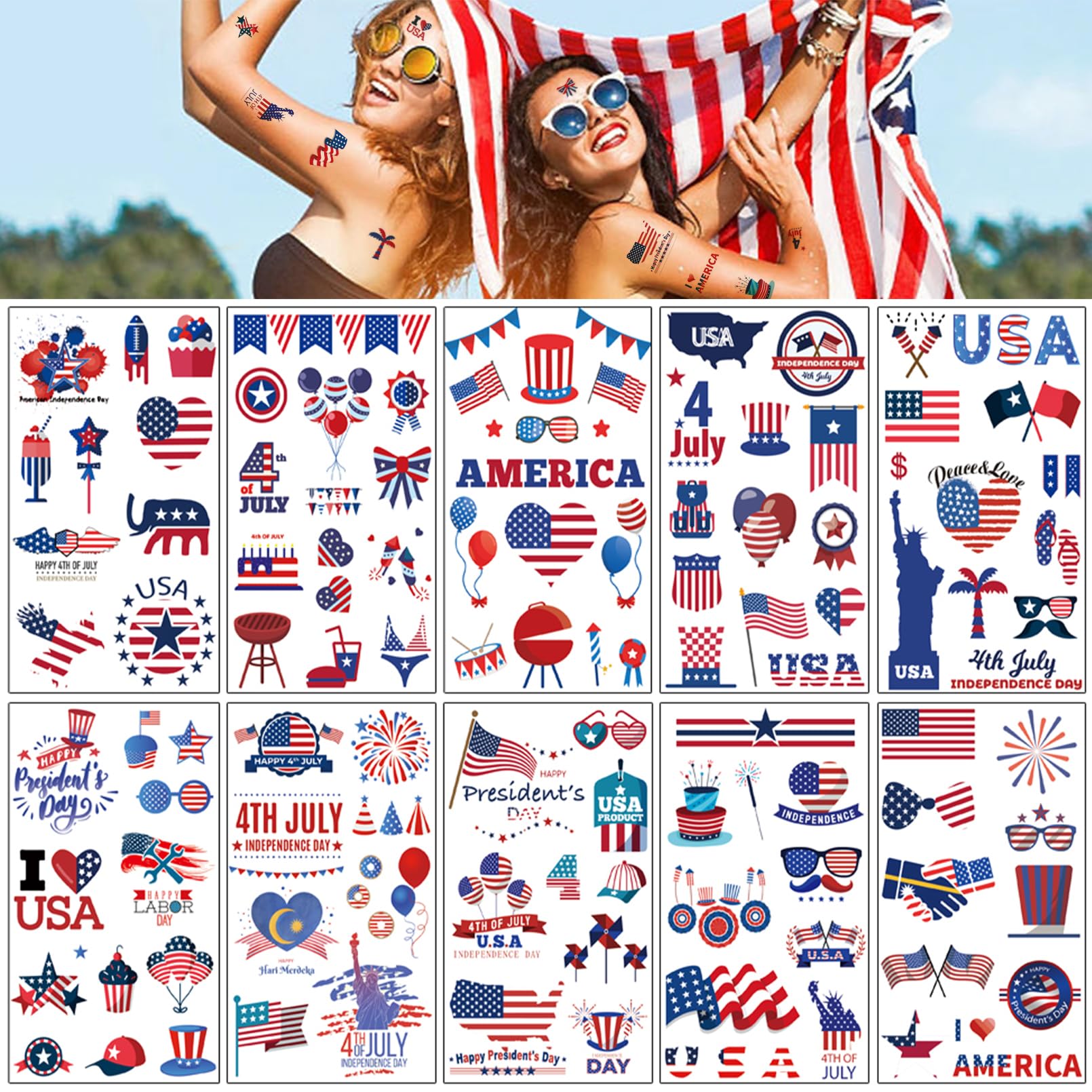 10 Sheets American flag Independence Day Temporary Tattoo Stickers For July 4th Parades And Celebrations,Easy Removal