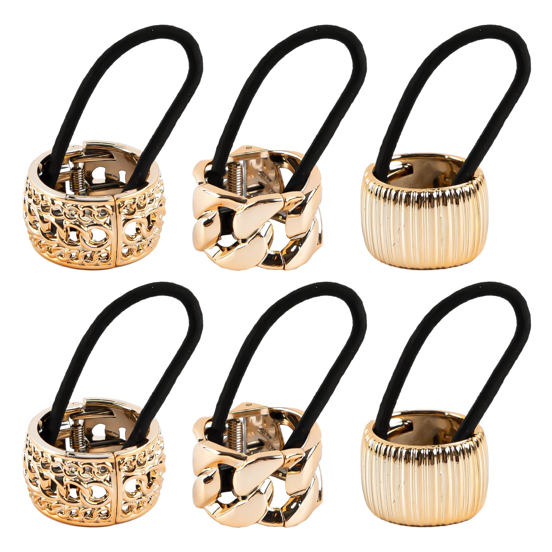 Framendino, 6 Pack Ponytail Cuff Ponytail Holder Elastic Hair Ties Rope Gold for Women 3 Styles