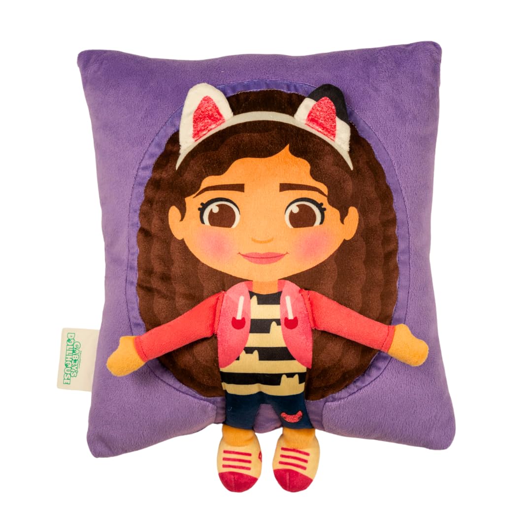 Immerse yourself in the whimsical world of "Gabby's Dollhouse" with our officially licensed Gabby's Dollhouse Snuggle Pillow! This delightful pillow captures the essence of Gabby's imaginative universe, featuring 3D arms, legs, and those unmistakably adorable cat ears that fans adore. Just as the show sparks creativity and joy, this pillow infuses every cuddle session with that same enchanting spirit.For those concerned about keeping this vibrant pillow looking its best, maintenance is simple: opt for spot cleaning as needed to retain its vivid colors and intricate detailing. But the pillow's appeal extends beyond mere comfort. Whether you're creating a themed playroom, looking for a whimsical accent piece, or aiming to surprise a young fan with a cherished gift, its versatility shines through.Rest easy knowing this is a 100% officially licensed product, ensuring you receive the highest quality and authenticity that "Gabby's Dollhouse" enthusiasts deserve. Embark on meowvelous adventures and cozy up with Gabby, making every moment a playful escapade into imagination.