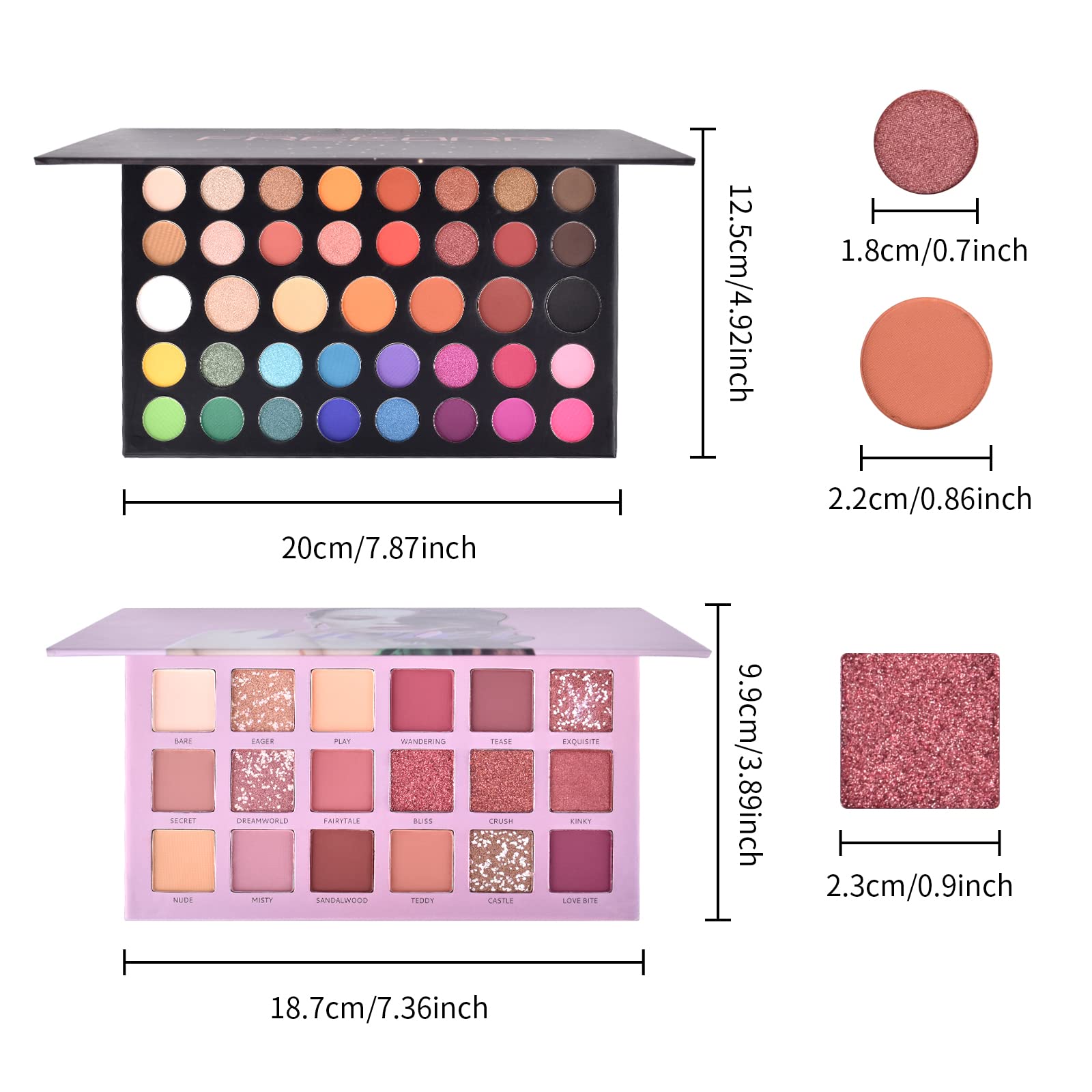 FREEORR 2Pcs Highly Pigmented Matte Eyeshadow Palette, Colorful 39Colors Matte/Shimmer Eyeshadow Pallet+18Colors Pressed Pearl Velvet Texture,Natural Blendable Make Up Eye Shadows Cosmetics Gift Kit