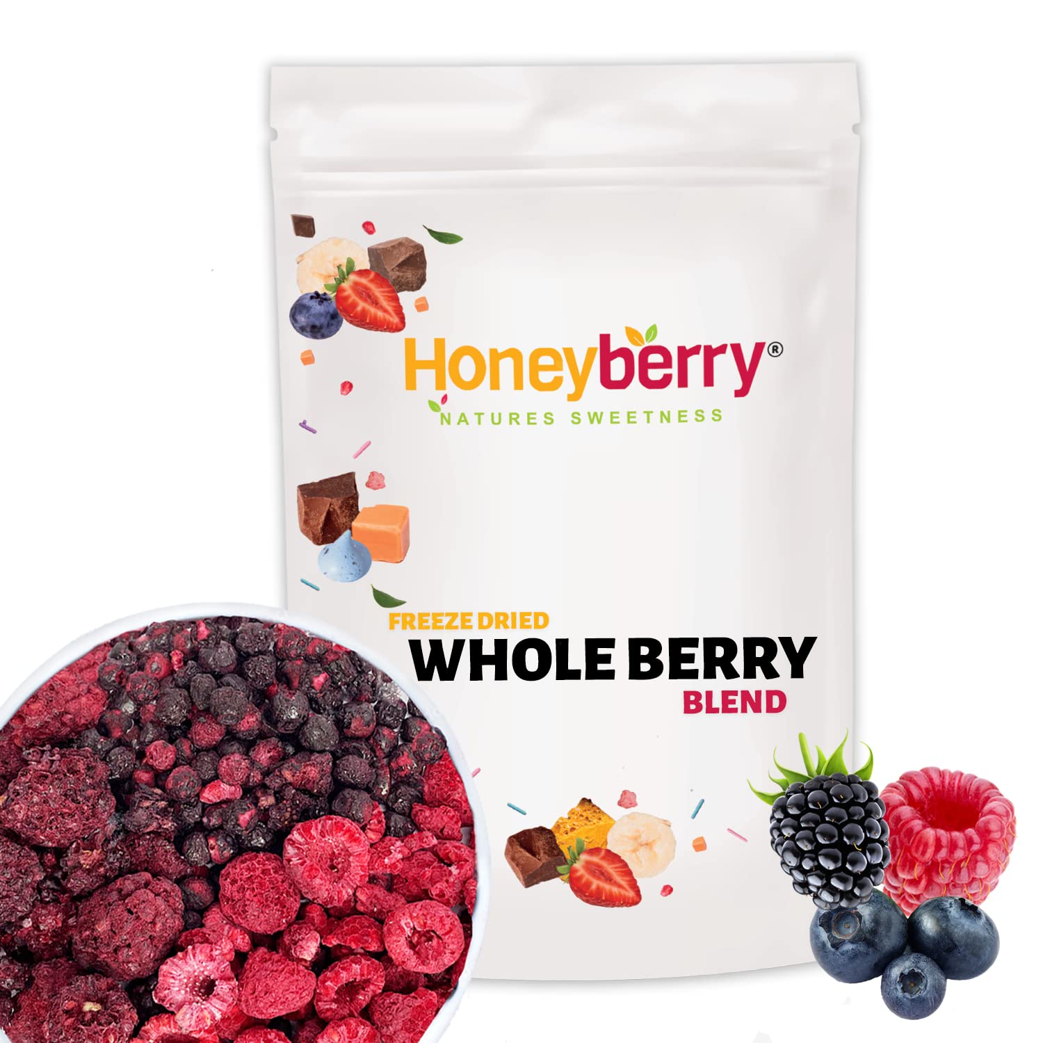 Freeze dried fruit blend of whole blackberries, whole blueberries and whole and broken raspberries No added ingredients, just 100% fruit. Super healthy and very very tasty. Very long shelf life stored air tight. Amazing crunchy texture. This berry fruit blend adds a whole new dimension to your favourite desserts. Sprinkle on ice cream, cheescakes, trifles, well on just about anything! No additives or preservatives. Ripe in season fruits which have been freeze dried to < 5% moisture. The very low temperatures used in this process maintain the fruits colour, flavour and nutritional values. Suggested uses for freeze dried fruit are: Macaroons Cake inclusions Frostings Ice-cream Icings Fudges Meringues Decorative sprinkles on desserts and baked goods