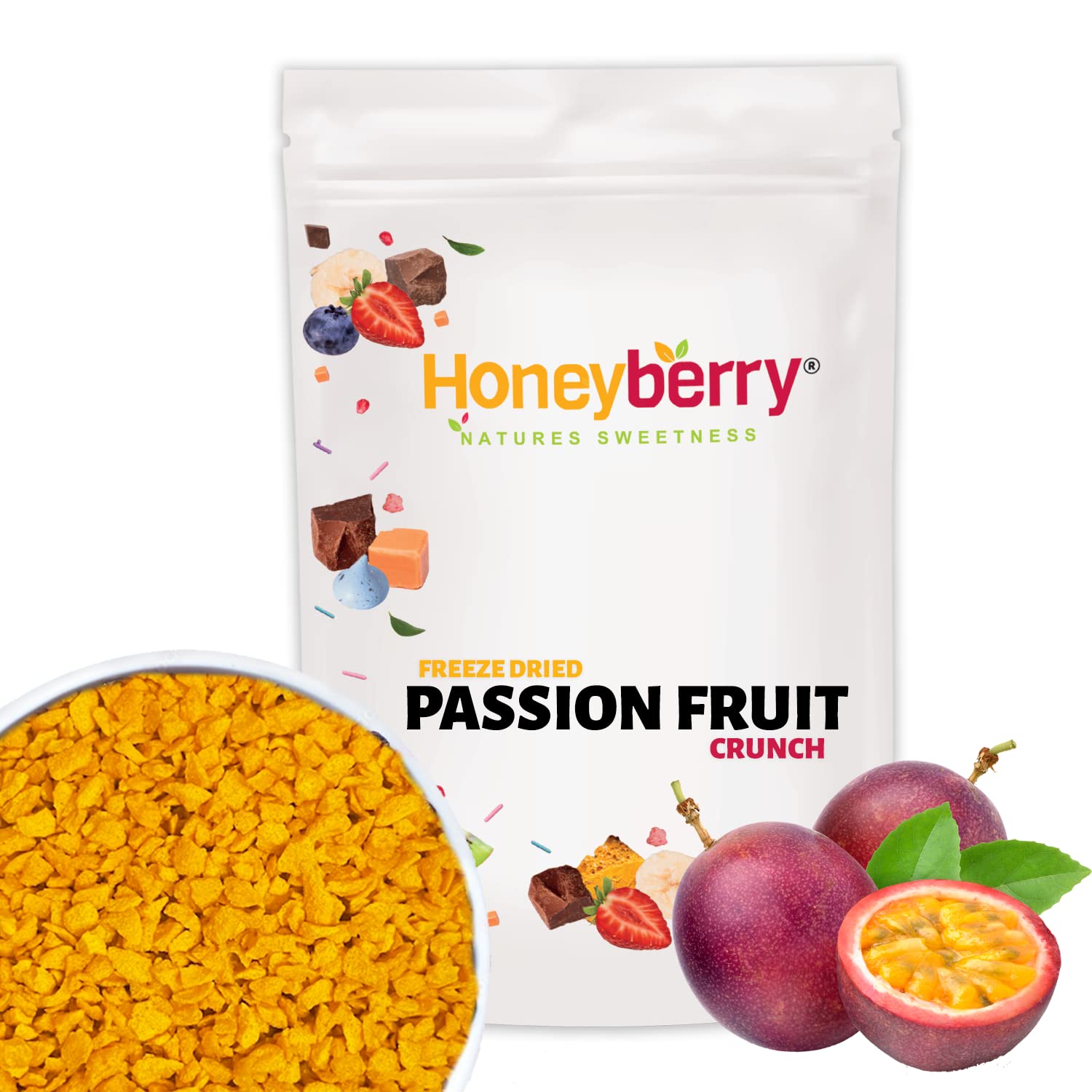 DescriptionProduct DescriptionHoneyberry Freeze Dried Passion Fruit Crunch 100 g have a refreshing burst of exotic flavour and crunchy texture. It is made from natural products, no preservatives or genetically modified ingredients added. Perfect for baking. It can be used as a decorating toppers, sprinkles or crispy flakes to chocolate cake, birthday cakes, cupcakes, desserts, ice creams and much more.IngredientsMalto Dextrin (Maize), Passion Fruit Concentrate, Natural Flavor, Acidifier Citric Acid E330.Manufacturer Contact InformationHoneyberry International LLP, Unit 7 Marlborough Street, Burnley, England, BB11 2HW.