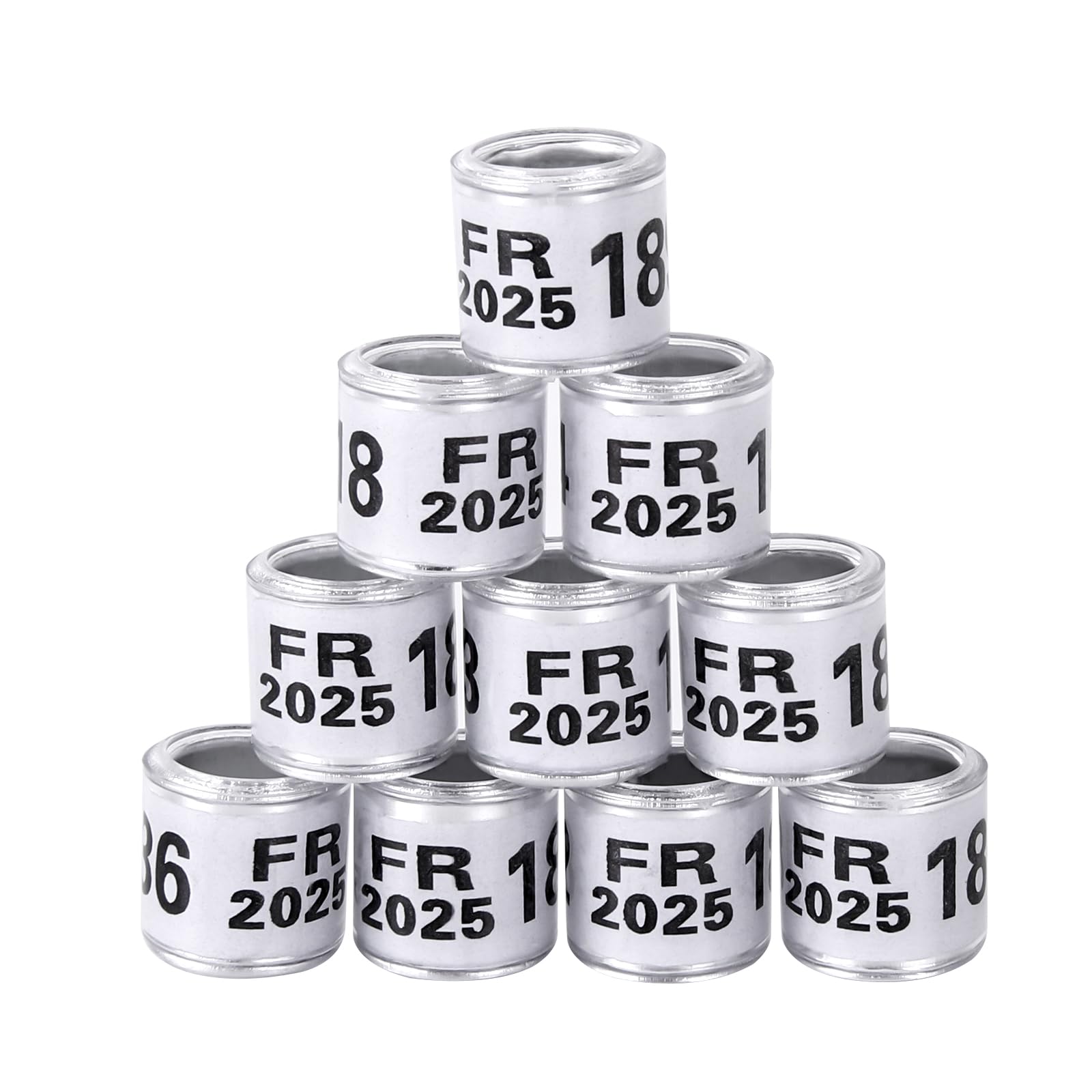 FULAIERGD 100Pcs Multicolor Aluminium Pigeon Leg Rings Dove Leg Rings Identify Bands Plastic with 2025 FR Training Identify Birds Foot Ring (White)