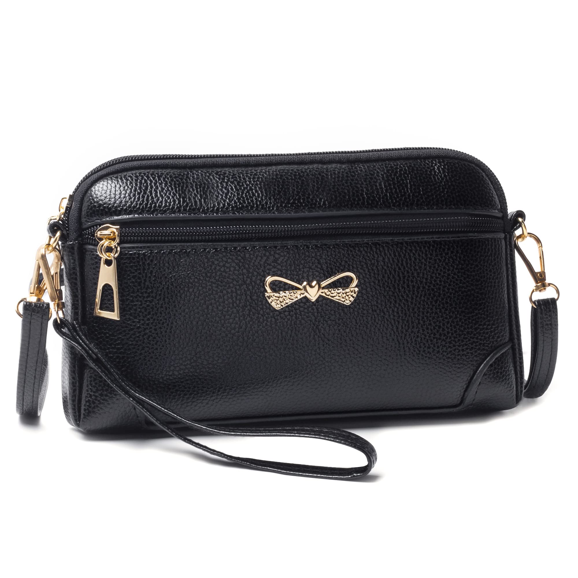 🎀 This small handbag complete with a removable wrist strap and a long adjustable strap - Can be used as a purse, a cross body shoulder bag or without strap as a clutch. | 🎀 Spacious inner compartments including 1 zipped section in between 2 open compartments.Plus 2 external handy zipper pockets. Easily fits a wallet, cellphone, tissues, keys, cosmetics and other small items you use on a routinely basis. | 🎀 It is simple yet stylish, lightweight yet durable and practical. Great for everyday life, going to work, out shopping, meeting friends for coffee, going for a walk. | 🎀 Size 9.06"(L) x 5.51"(H) x 1.18"(D) (23cm x 14cm x 3cm). Weight 0.50lbs (225g). The cross body strap length is 50.79'' (129cm), adjustable & detachable. Wrist strap is 8.27'' (21cm) | 🎀Gold-tone hardware.
