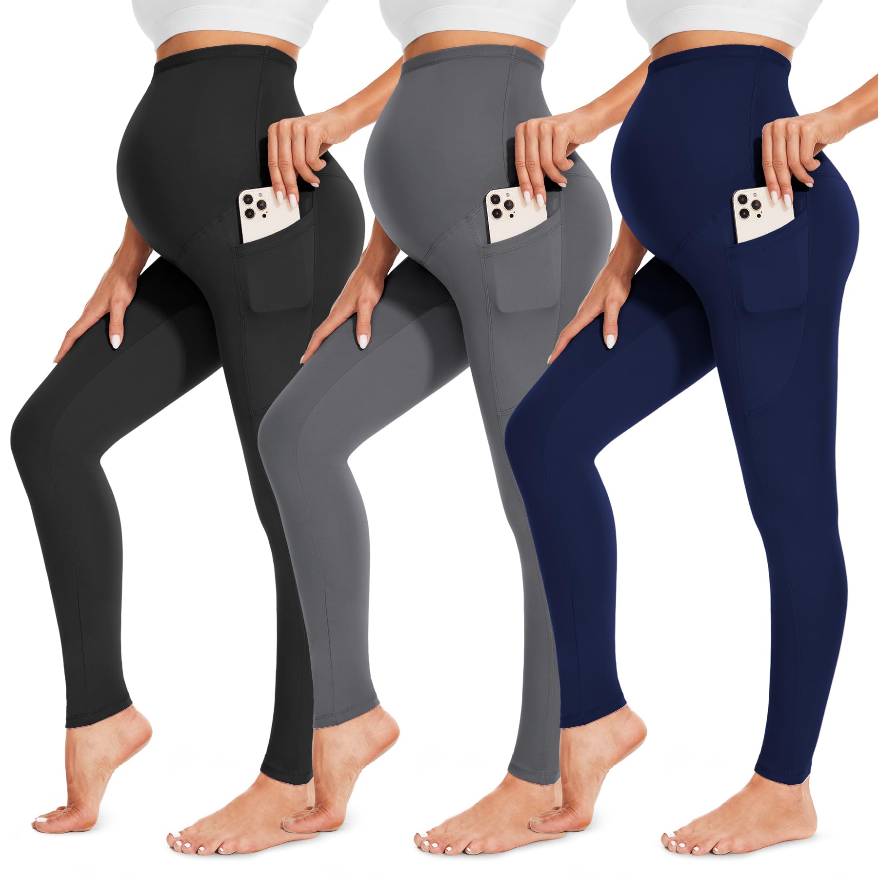 FULLSOFT 3 Pack Women’s Maternity Leggings Over The Belly with Pockets-High Waisted Pregancy Yoga Pants Active Wear Workout Leggings(S,HHZ)