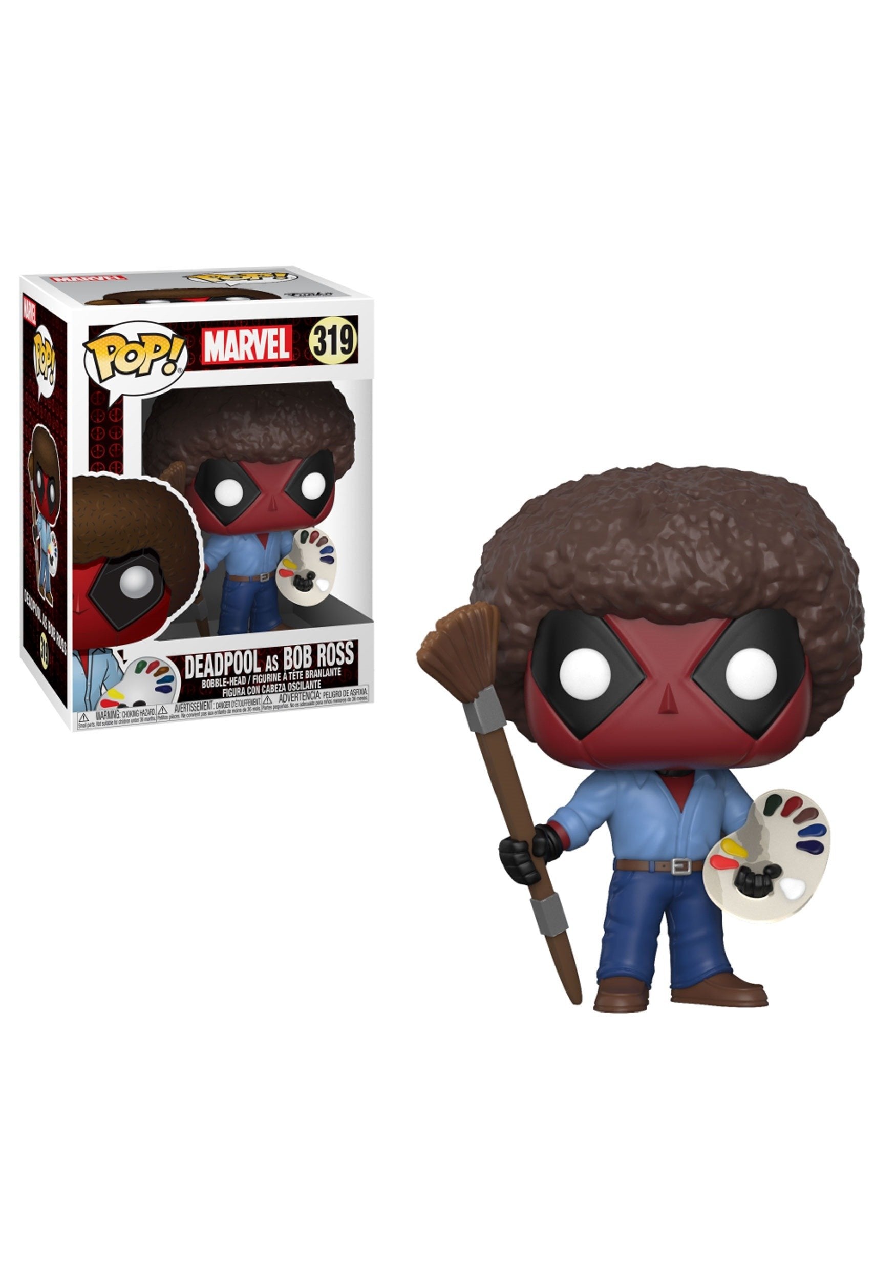 From Deadpool Playtime, Bob Ross, as a stylized POP vinyl from Funko! Figure stands 3 3/4 inches and comes in a window display box. Check out the other Deadpool Playtime figures from Funko! Collect them all!