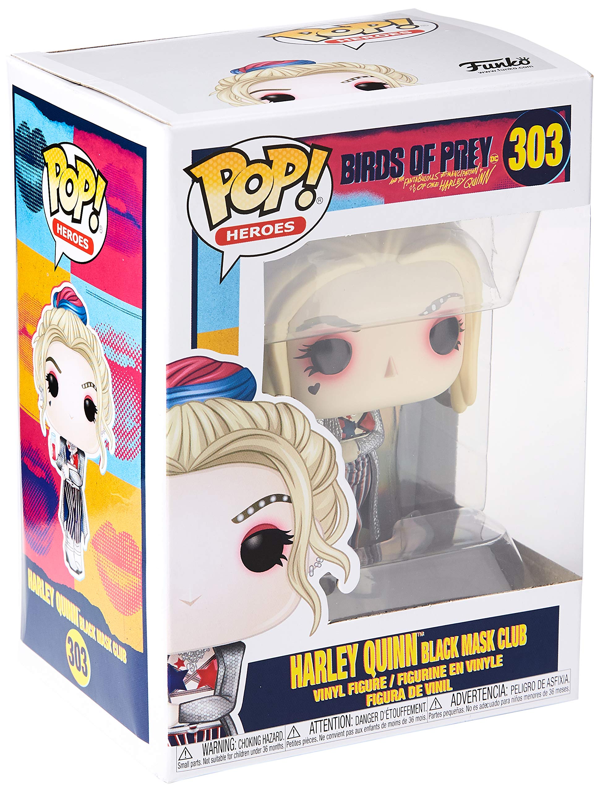 From Birds of Prey, Harley Quinn (Black Mask Club), as a stylized POP vinyl from Funko! Figure stands 3 3/4 inches and comes in a window display box. Check out the other Birds of Prey figures from Funko! Collect them all!
