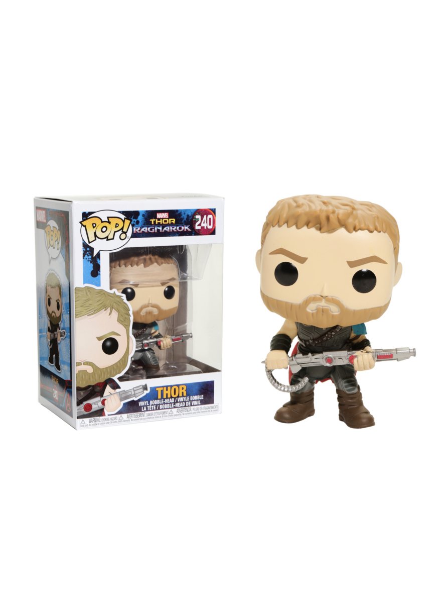 From Thor Ragnarok, Thor in Gladiator Suit, as a stylized pop vinyl from Funko! figure stands 3 3/4 inches and comes in a window display box. Check out the other Thor Ragnarok figures from Funko! collect them all!