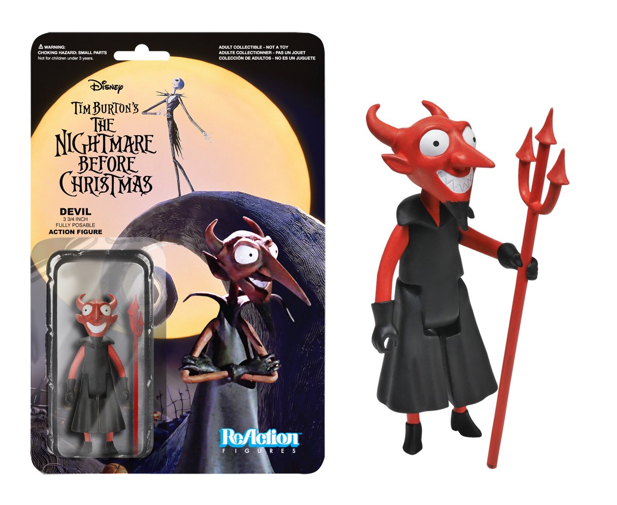 The red devil with horns and a goatee from The Nightmare Before Christmas gets the ReAction treatment! Standing 3 3/4-inches tall, this articulated figure of Devil is the perfect size for desk display at work or at home. The Nightmare Before Christmas The Devil ReAction Retro Action Figure from Super7 and Funko comes with a pitchfork accessory. It makes an awesome collectible for any fan of the Tim Burton classic!.