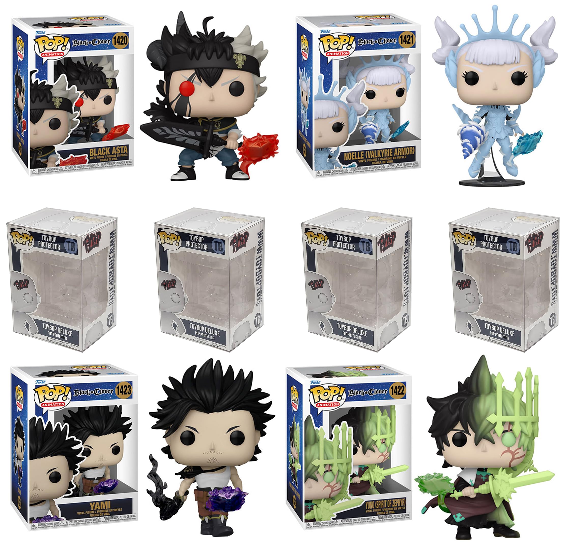 Funko Pop Black Clover + Protector: Anime Pop! Animation Vinyl Figure (Collector Gift Set Bundled with ToyBop Box Protector Case) (Set of 4)