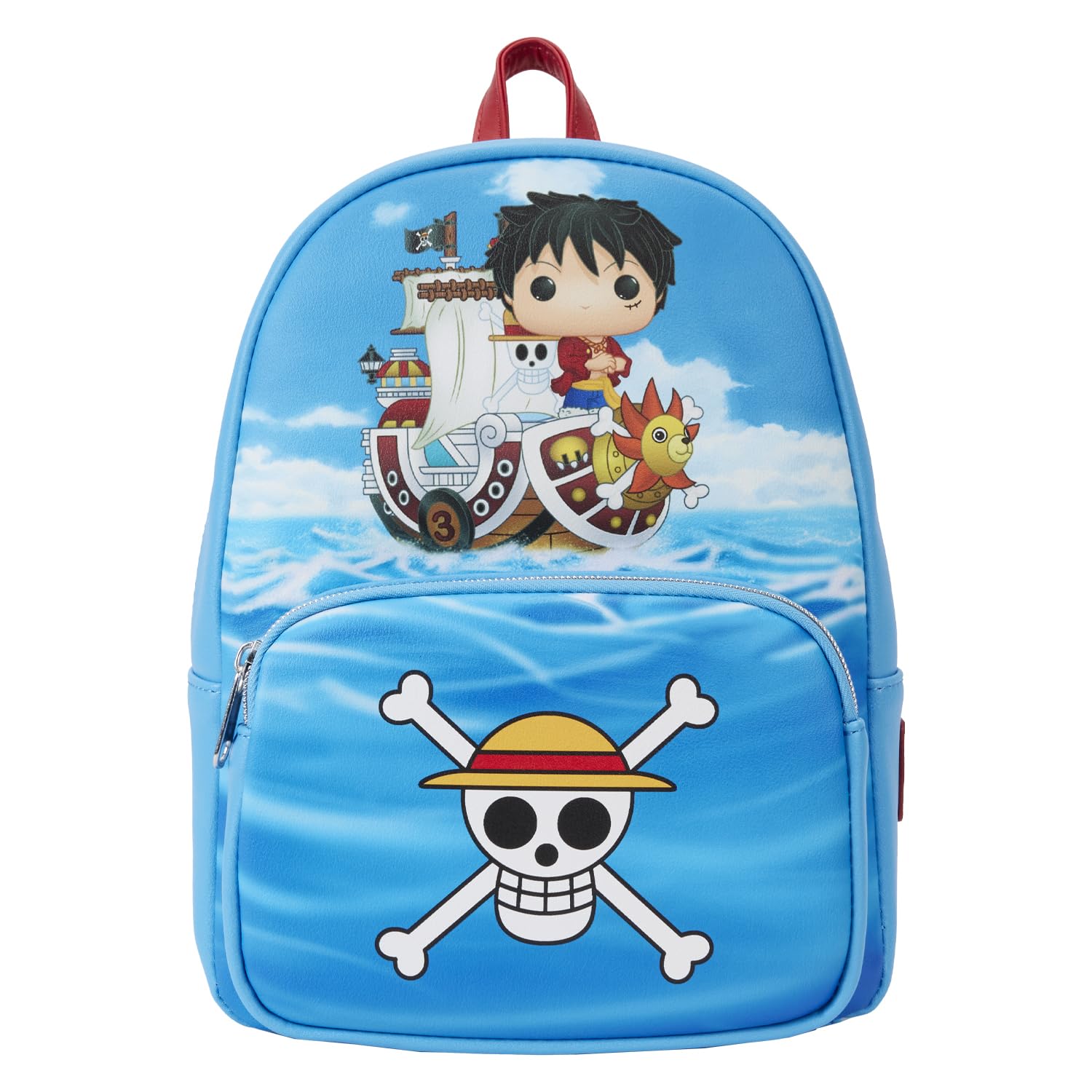 Set a course for adventure with the One Piece Luffy Funko Mini Backpack! This swashbuckling accessory has plenty of room for holding all of your pirate treasure as you sail the high seas! This mini backpack features Pop! Luffy aboard the Thousand Sunny, as well as the emblem of the Straw Hat Pirates on the front pocket. Backpack is made of vegan leather (polyurethane) and has adjustable shoulder straps. Additional features include sturdy metal hardware and printed details. This backpack is an officially licensed One Piece product. Approximate dimensions: 9” W x 10.5” H x 4.5” D. (Please note: width is measured across the bottom of the bag.)