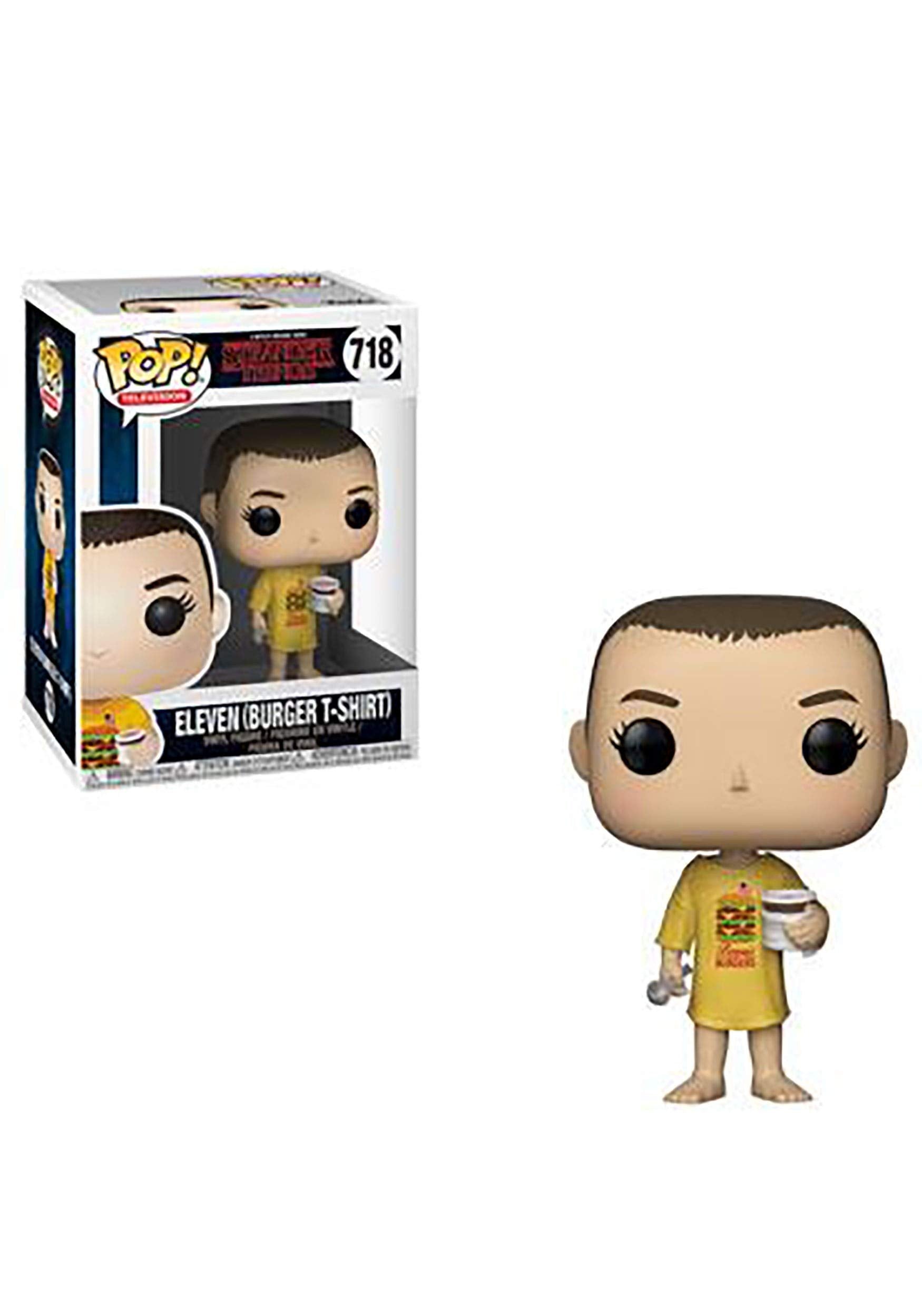 From Stranger Things, Eleven in Burger T-Shirt, stylized as a POP! From Funko! Figure stands 3.75 inches tall and comes in a window display box. Collect all Stranger Things items from Funko!