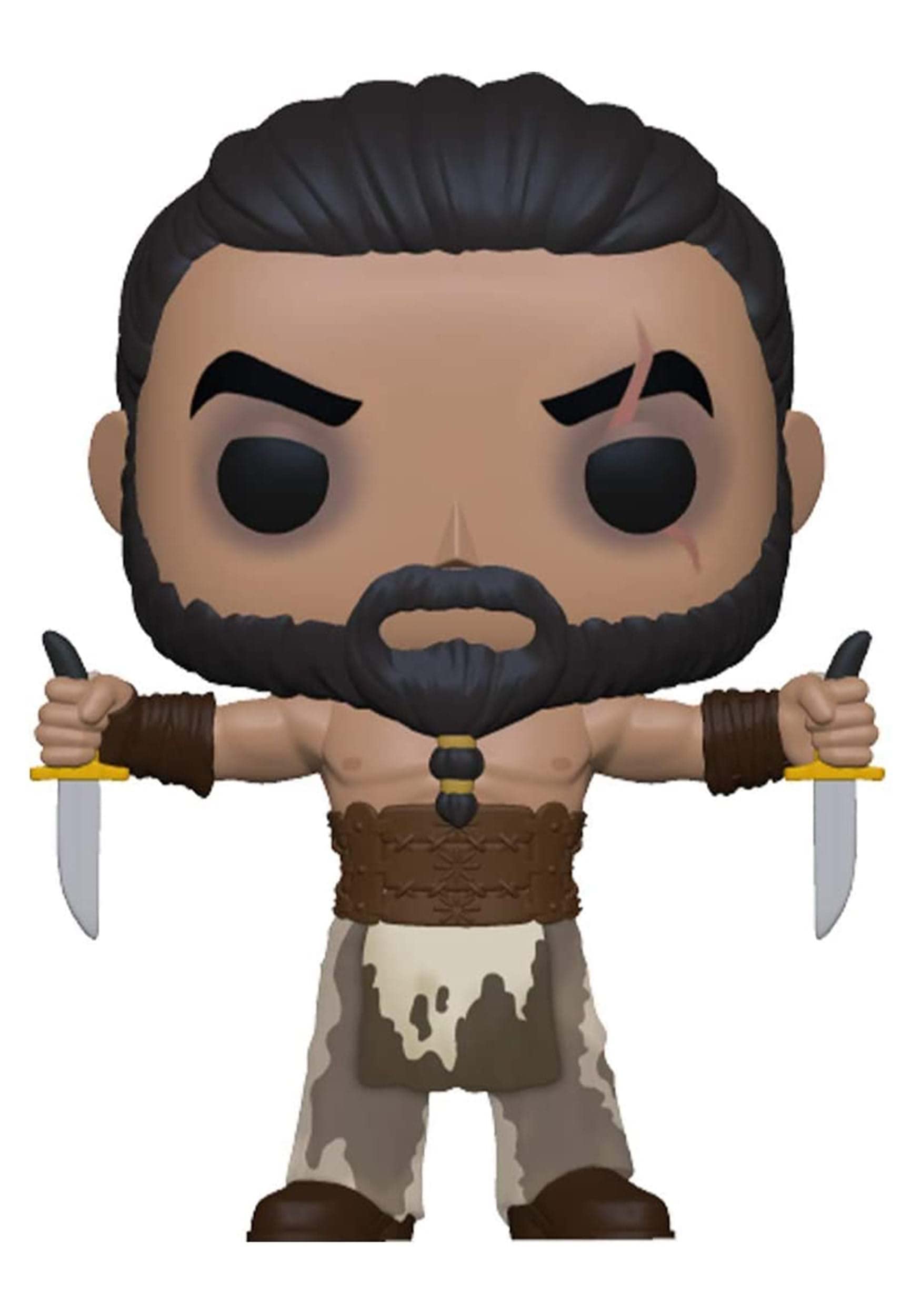 From Game of Thrones, Khal Drogo with Daggers, as a stylized Pop! vinyl from Funko! Figure stands 3 3/4 inches and comes in a window display box. Check out the other Game of Thrones figures from Funko! Collect them all!