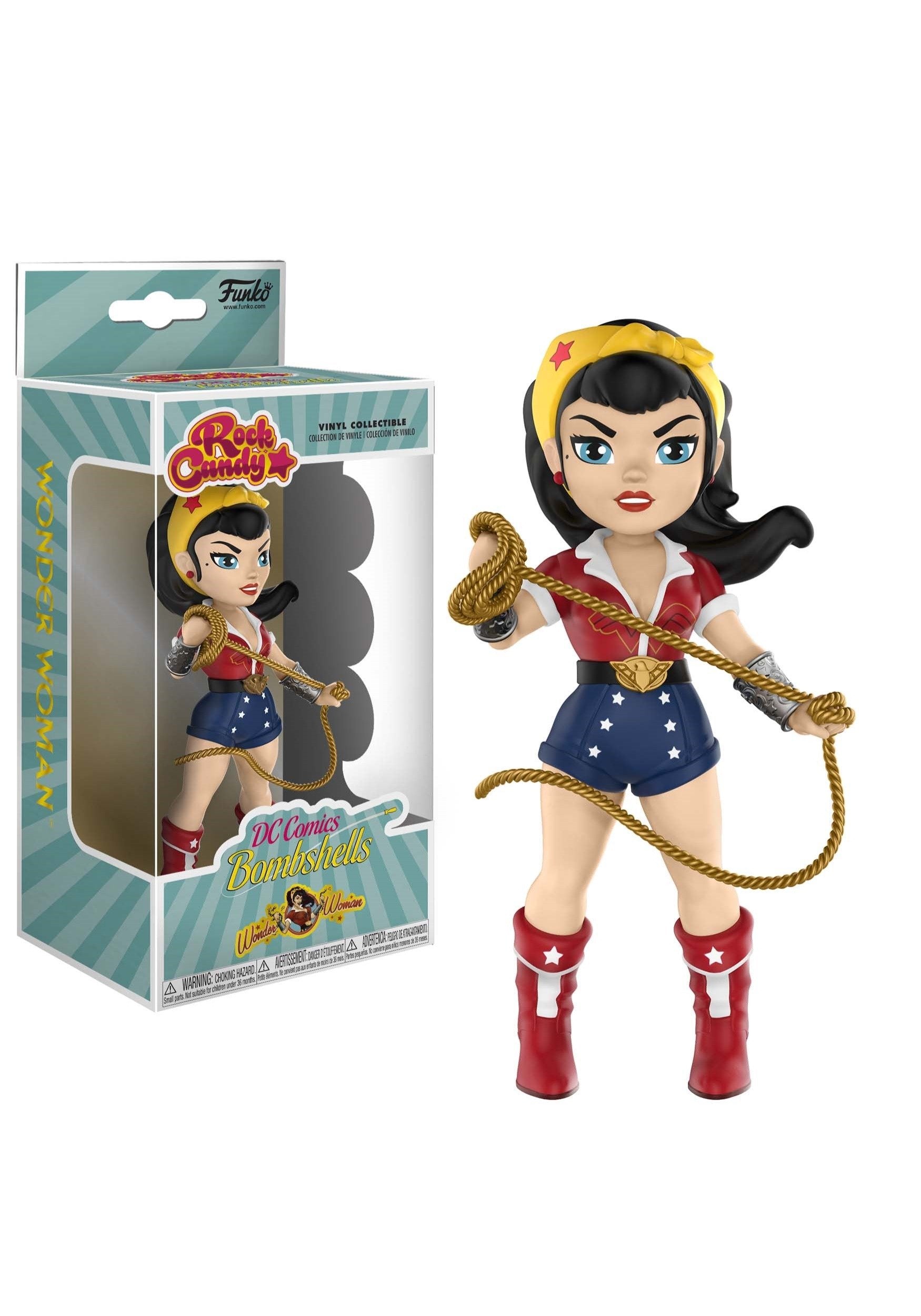 From DC Bombshells, wonder Woman, as a stylized rock candy figure from Funko! figure stands 5 inches and comes in a window display box. Check out the other rock candy figures from Funko! collect them all!