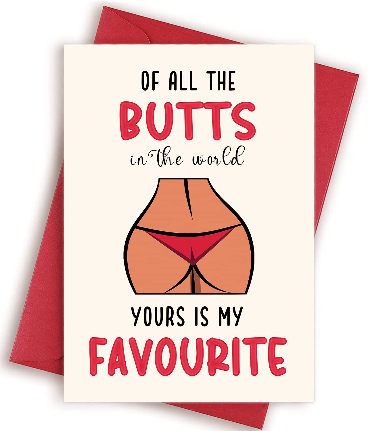 Funny Anniversary Card for Wife, Of All The Butts in The World Yours is My Favourite Valentine Card for Her, Naughty Birthday Card for Women, Romantic Card for Girlfriend, Rude Holiday Card for Wife
