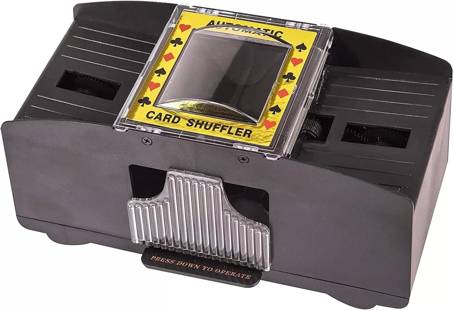 Give a professional edge to those card sessions. Perfectly shuffling up to two packs of cards at a time. Four AA batteries are required but not included.