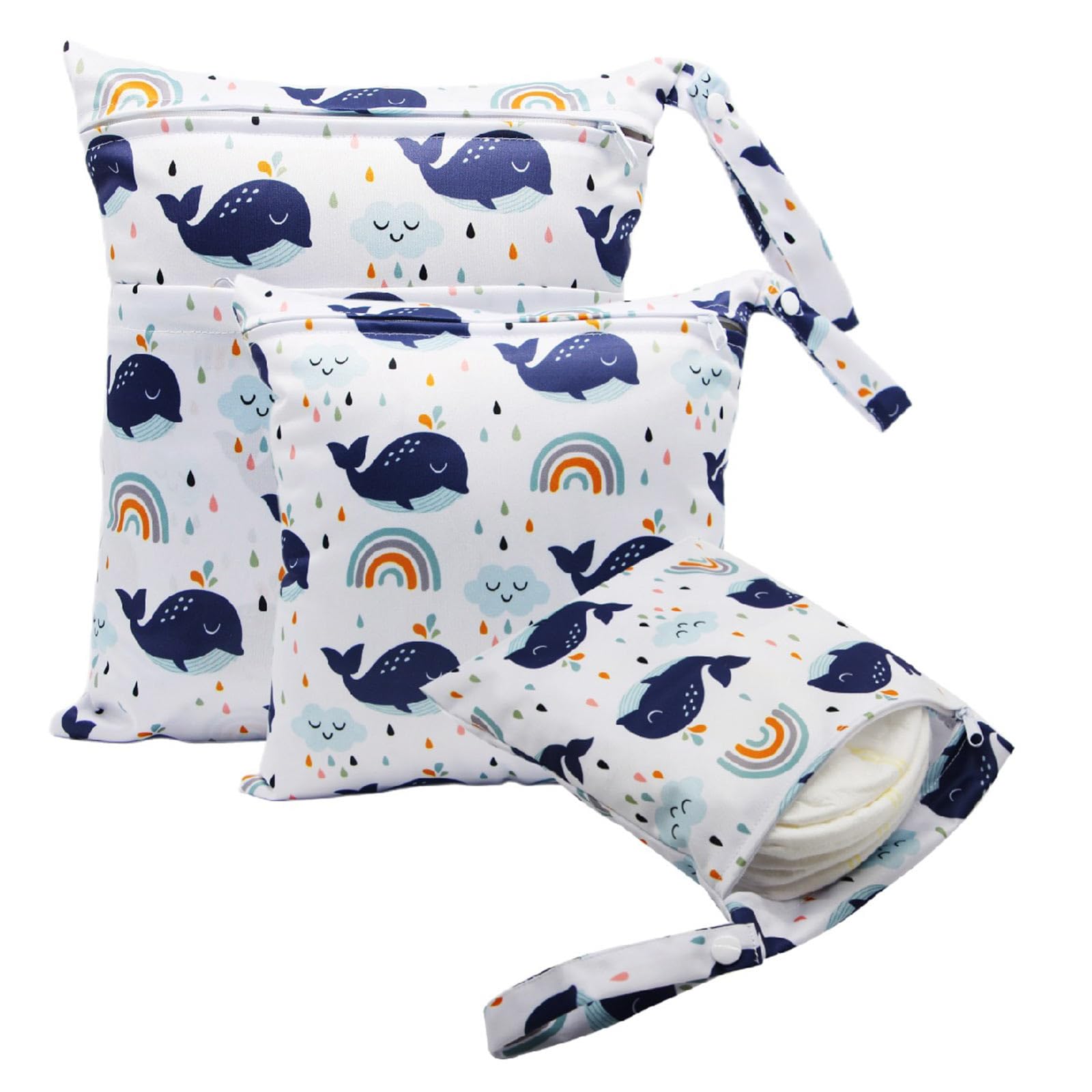 FYting Wet Bag,3 Pcs Wet Bags for Swimming,Nappy Bag,Reusable, Waterproof Wet and Dry Separation Bag with Zipper, for Swimming Camping Travel Fitness Beach (Whale)