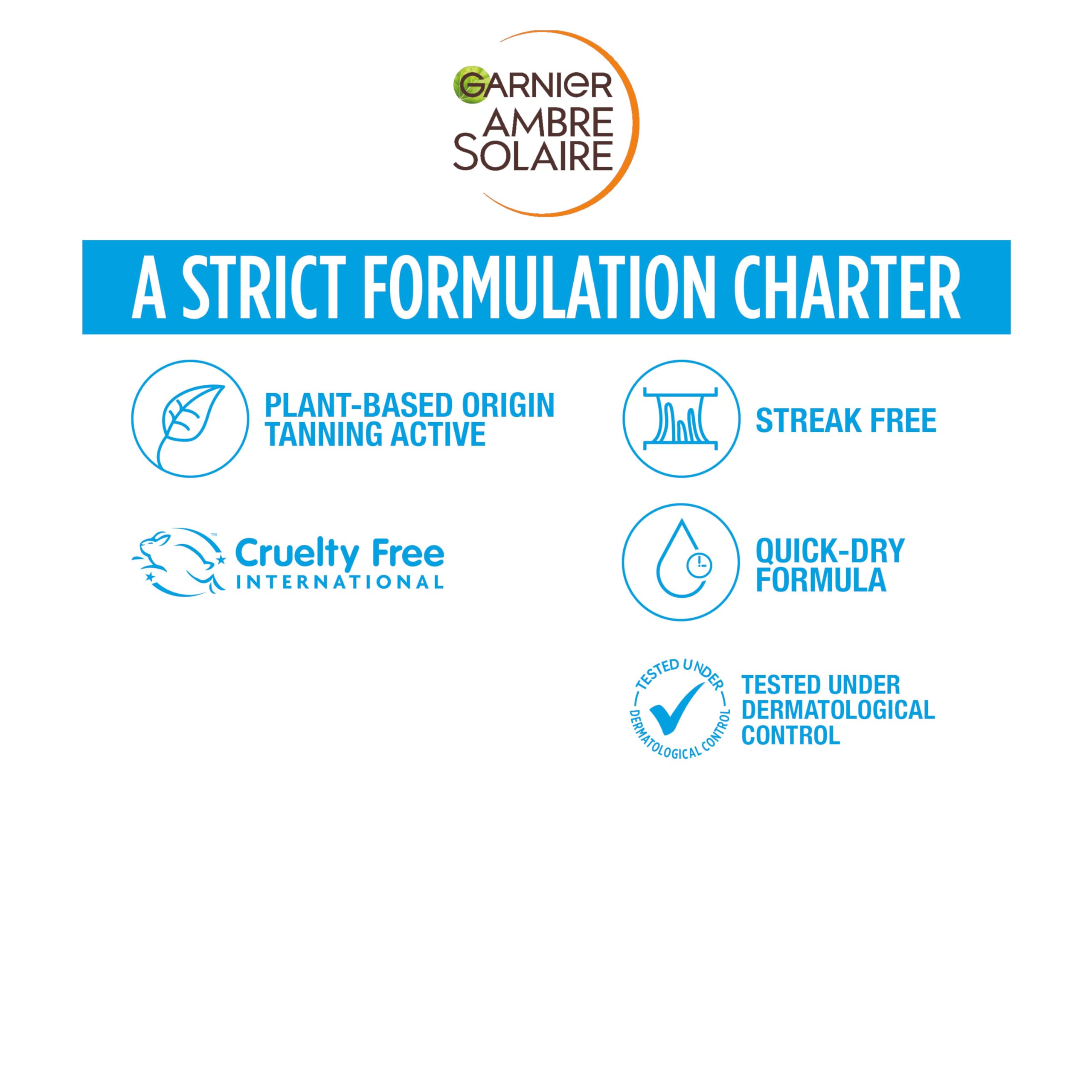 Garnier Ambre Solaire Self-Tan Face Mist, in shade 'dark', offers a beautiful natural looking tan with a flawless finish that lasts up to one week*. Powered by plant-based origin tanning active and enriched with nourishing apricot oil and Vitamin E, it gives a sun kissed golden glow with no steaks or orangey tones. The lightweight formula is quick drying and non-sticky. With a spray format it's easy to use and delivers an ultra-fine mist for even coverage. *instrumental test - 21 subjects, after one application.Ingredients736610 4 - INGREDIENTS: AQUA / WATER, DIMETHYL ETHER, DIHYDROXYACETONE, GLYCERIN, PROPYLENE GLYCOL, TOCOPHEROL, PHENOXYETHANOL, PEG-60 HYDROGENATED CASTOR OIL, LIMONENE, LINALOOL, BENZYL SALICYLATE, BENZYL ALCOHOL, GERANIOL, CITRONELLOL, CITRAL, PRUNUS ARMENIACA KERNEL OIL / APRICOT KERNEL OIL, COUMARIN, PARFUM / FRAGRANCE. (F.I.L C218255/2).Directions4 EASY STEPS FOR A PERFECT NATURAL-LOOKING TAN 1. For an even, flawless finish ensure face is clean and exfoliated2. Make sure skin is dry and free from moisturisers before applying3. Shake well before use. Tie your hair back and hold the bottle 15 cm from your face. With your eyes closed, spray evenly onto your face and neck. Allow to dry without rubbing in. Wash your hands after application.4. Use a cotton bud to clean your eyebrows. Allow tan to develop for 1 hour*. No need to wash off. Re-apply as desired to achieve a deeper tan. *Instrumental test, 21 people.PRECAUTIONS: does not protect the skin from UV rays. In case of contact with eyes, rinse immediately. Avoid contact with fabrics. If clogging occurs, rinse under warm water.Manufacturer Contact InformationGarnier, London, W6 8AZ.