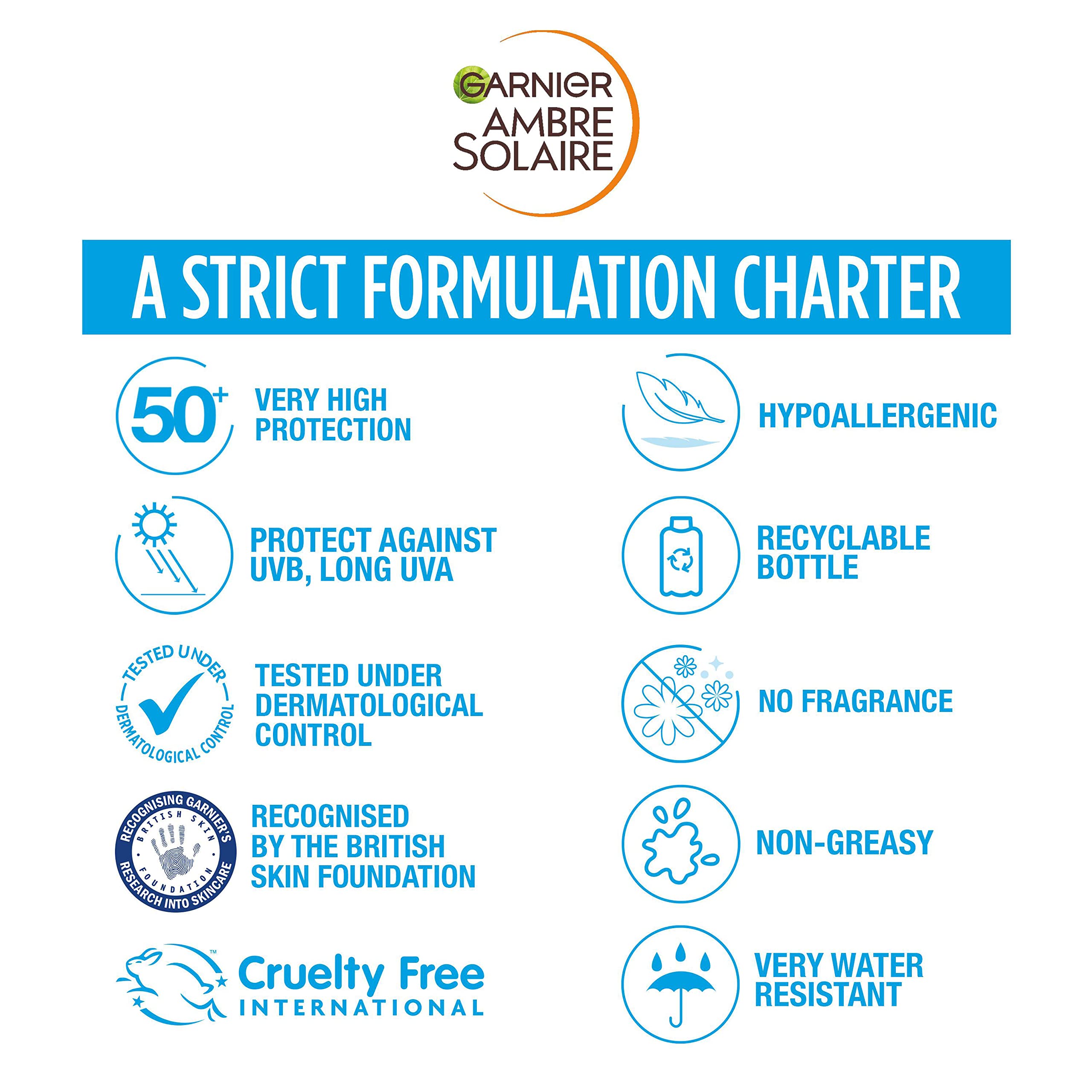Garnier Ambre Solaire Sensitive Advanced Spray Sun Cream SPF50+ provides very high protection against sun induced skin damage and sunburn. With Ceramide providing UVA & UVB protection and instant skin barrier function protection.The formula is developed for all skin types, including fair and sensitive skin. Non-greasy and Fragrance-free. This very water resistant sun protection cream is hypoallergenic and is tested under dermatological control. The formula conforms 100% to European recommendations for protection against the harmful effects of UVA and UVB rays. This suncream offers advanced protection against immediate sun induced skin damage, caused by UVB rays, as well as protection from long-term damage and premature skin ageing caused by UVA rays. Garnier suncare research is recognised by the British Skin Foundation.Ingredients885986 - INGREDIENTS : AQUA / WATER, DIETHYLAMINO HYDROXYBENZOYL HEXYL BENZOATE, ALCOHOL DENAT., BUTYL METHOXYDIBENZOYLMETHANE, BIS-ETHYLHEXYLOXYPHENOL METHOXYPHENYL TRIAZINE, ETHYLHEXYL SALICYLATE, ISOPROPYL PALMITATE, DIISOPROPYL ADIPATE, GLYCERIN, PROPANEDIOL, ETHYLHEXYL TRIAZONE, C12-22 ALKYL ACRYLATE/HYDROXYETHYLACRYLATE COPOLYMER, DICAPRYLYL ETHER, TOCOPHEROL, HYDROXYACETOPHENONE, SODIUM POLYACRYLATE, SODIUM BENZOATE, TRISODIUM ETHYLENEDIAMINE DISUCCINATE, TRIETHANOLAMINE, DROMETRIZOLE TRISILOXANE, ALOE BARBADENSIS LEAF JUICE, CAPRYLYL GLYCOL, ACRYLATES/C10-30 ALKYL ACRYLATE CROSSPOLYMER, CERAMIDE NP, CITRIC ACID, POTASSIUM SORBATE. (F.I.L . Z70015245/1).Directions1. Shake the bottle well before use. 2. Hold the bottle 10-15 cm from the skin. 3. Spray evenly over all exposed areas of skin. 4. Reapply every 2 hours, or immediately after swimming or sweating. 5. Avoid spraying directly into the face or eyes.