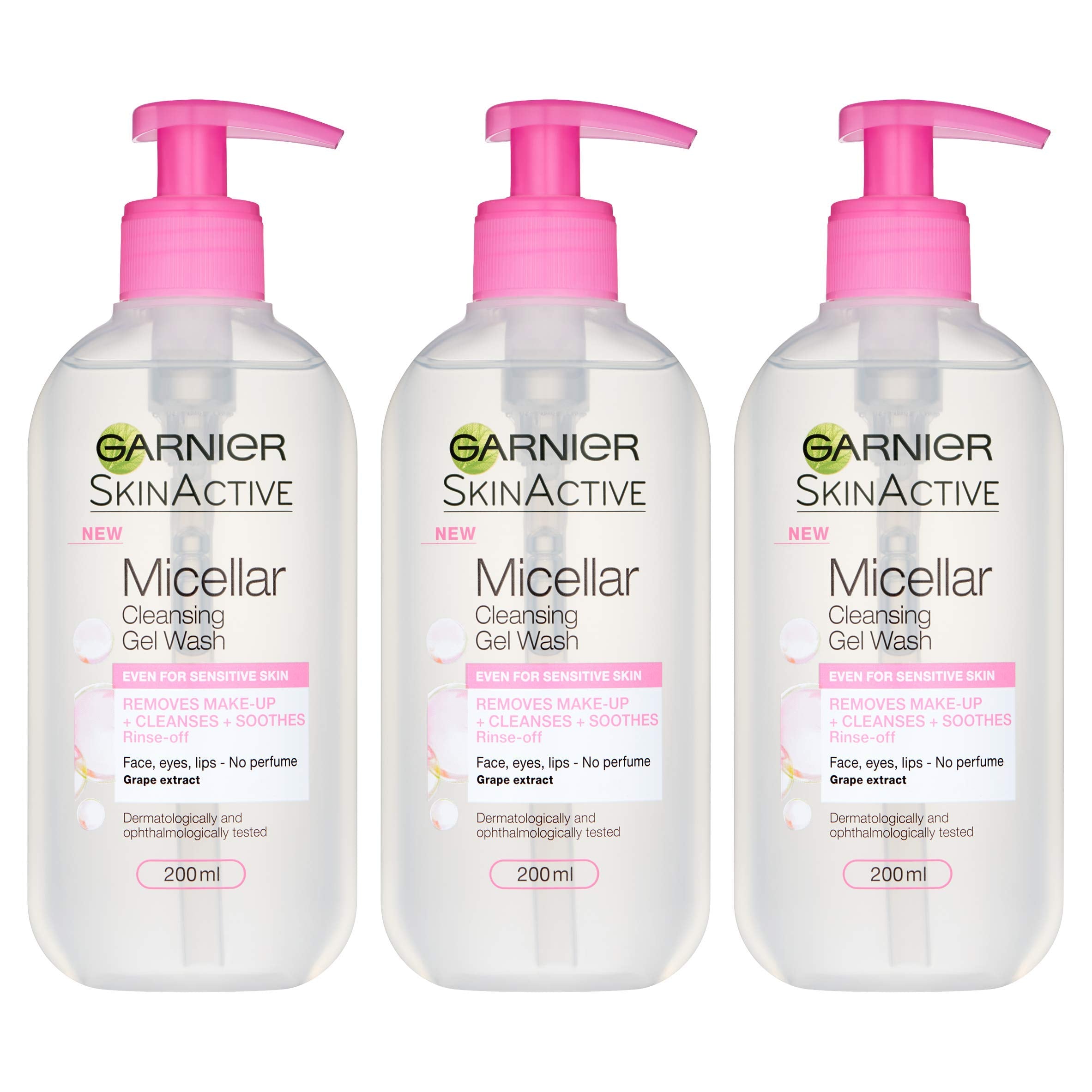 Product DescriptionLooking for an effective yet gentle way of removing make-up and cleansing skin in one easy step? Garnier Micellar Cleansing Gel gently melts away make-up and dirt from the skin to leave it free of impurities and residue to reveal skin's natural glow. The gentle cleansing formula glides over skin and effectively removes make-up without the need to rub or strain delicate sensitive skin. Garneir Micellar Gel makes make-up removal easy - it remove all traces of dirt, pollution and make-up from eyes, face and lips. Micellar Cleansing Gel has a soothing and fragrance free formula that suits all skin types, even sensitive. Bundle 3 packIngredients967071 29 Aqua / Water Glycerin PEG-200 Hydrogenated Glyceryl Palmate Coco-Betaine Sodium Laureth Sulfate Polysorbate 20 PEG-7 Glyceryl Cocoate Citric Acid Cocamide Mea PEG-55 Propylene Glycol Oleate Polyquaternium-11 PPG-5-Ceteth-20 Propylene Glycol Sodium Benzoate Sodium Chloride Sodium Hydroxide Vitis Vinifera Fruit Water / Grape Fruit Water (B189875/1)DirectionsApply to a wet face. Foam up with Water and massage gently in circular motions on face focusing on lip and eye area. Rinse off. In case of direct eye contact, rinse immediately.