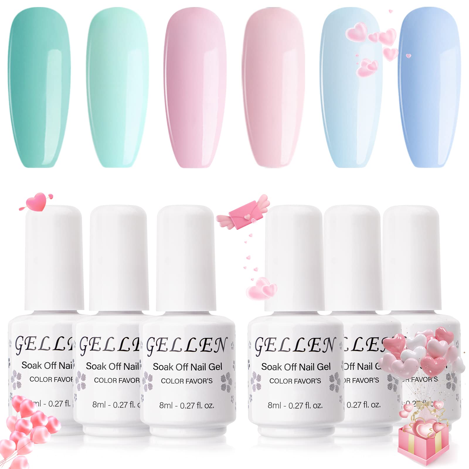 Gellen Gel Nail Polish Kit- 6 Colors Fresh Summer Series Mint Pink Blue Tones, Pastel Gel Polish - Trendy Nail Art Designs Home/Salon Gel Manicure