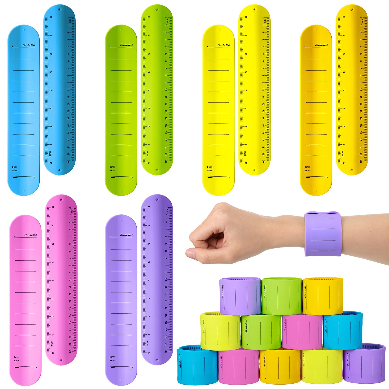 Gemscream 12 Pcs Slap Silicone Reminder Bracelet 9.4 x 1.8'' Reusable Wearable Wrist Notepad Writable Waterproof Erasable Wristband for Nurses Memo Watchband Wrist Strap Study(Neon,Classic)