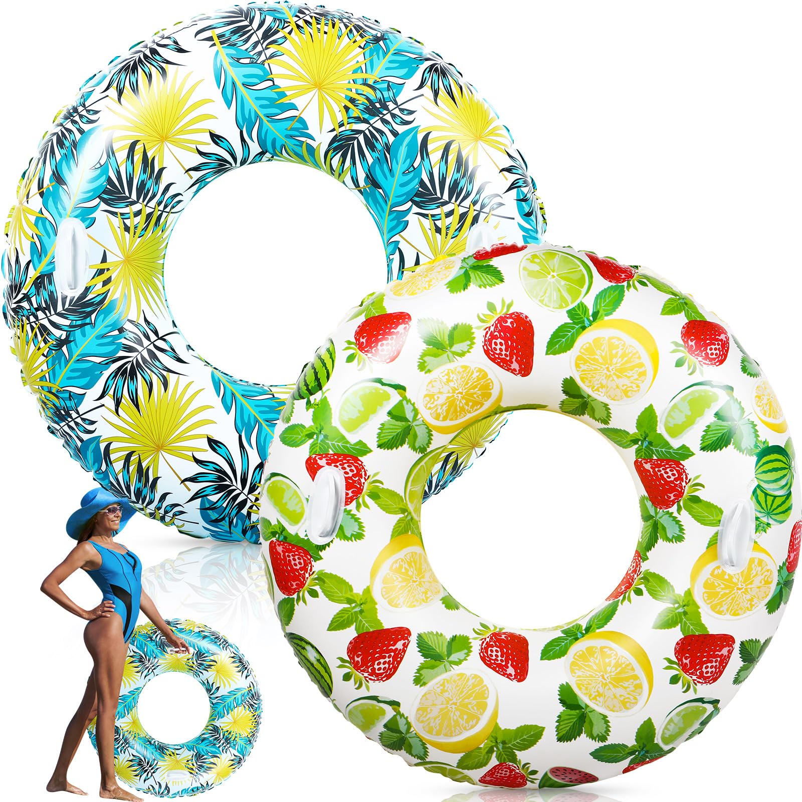 Gemscream 2 Pcs Large Swim Ring with Handles 47.24 Inch Inflatable Pool Floats Swimming Pool Tubes for Adults Teens Pool Floaties Adult Size for Summer Pool Lounger Beach Party (Hawaii)