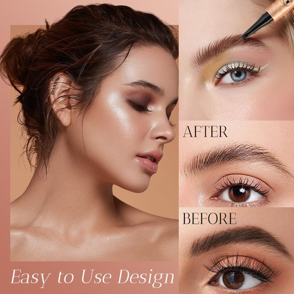 ?? Magic Eyebrow Pencil, Upgraded 3D Waterproof Microblading Eyebrow Pencil Contouring Pen, 4 Tipped Precise Brow Pen, Natural Fine Stroke Microblading Eyebrow Pencil