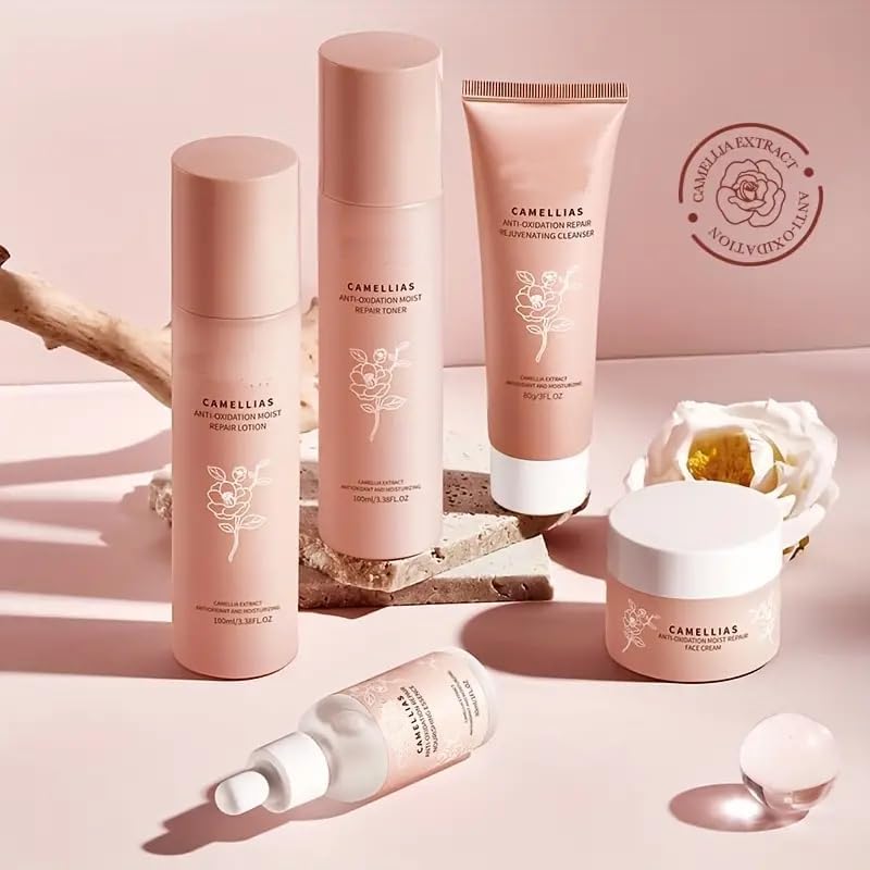 Generic Camellia Skincare Set, 5PCS Skincare Gift Set Moist Repair Toner Essence Face Cream Cleanser Lotion Camelia Flower Extract Serum Nourishing Emollient Moisturizing Skin Gift Box